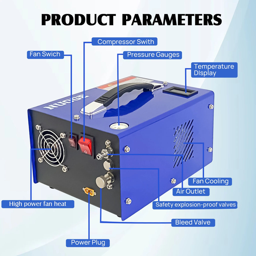 This is a portable air compressor, light weight, small size, easy to carry, The