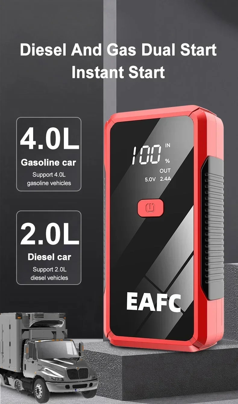 Arranque de salto para automóviles 2000a: corriente máxima 2000a, corriente de arranque 1000a, adecuada para vehículos de gasolina por debajo de 6l y vehículos diésel por debajo de 4l