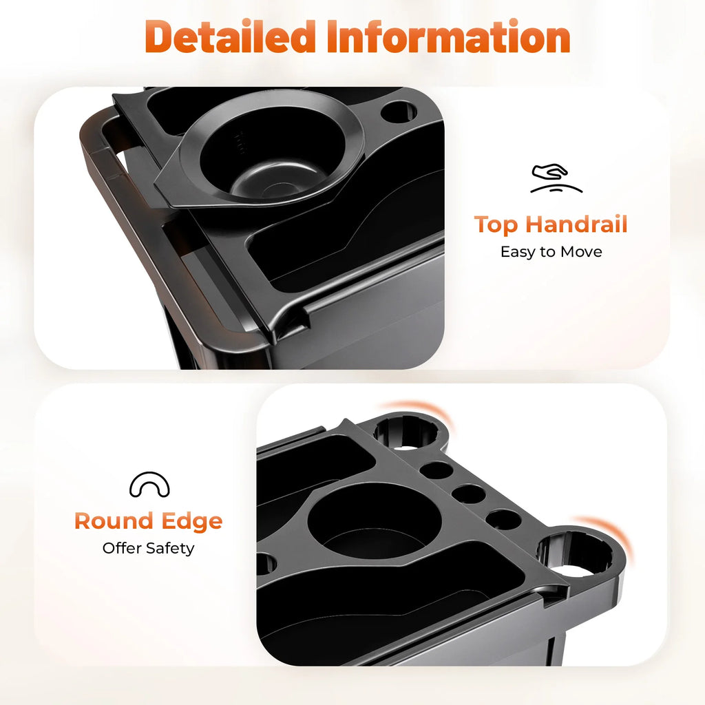 Top Handrail: The handrail design on top not only makes it convenient for you to move the cart but also can be used to hang towels, providing you with convenience in all aspects.