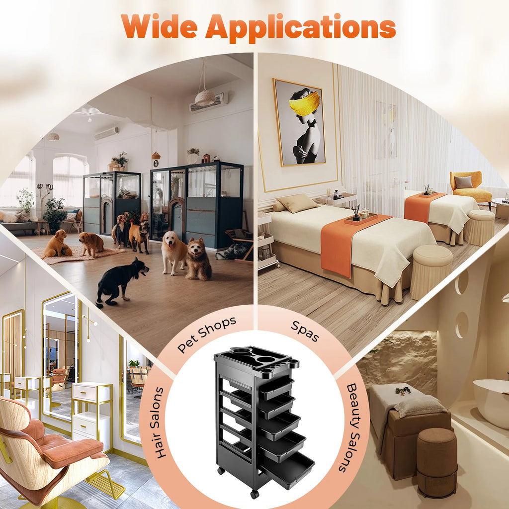 Flexible Space: The drawer of this 5-layer salon rolling trolley cart allows you to pull free from both sides, which can meet the needs of multiple people at the same time.
