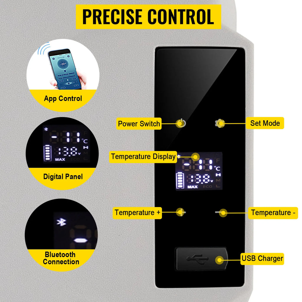 Perfect Structure: Our car refrigerator is equipped with animated details. The digital display can adjust the temperature; 2 reliable wheels is portable for you to carry this refrigerator; the USB interface can connect the mobile phone; the built-in handle is convenient to move; cup holders can hold drinks stabler in the car. What's more, you can use the mobile app to control the refrigerator.