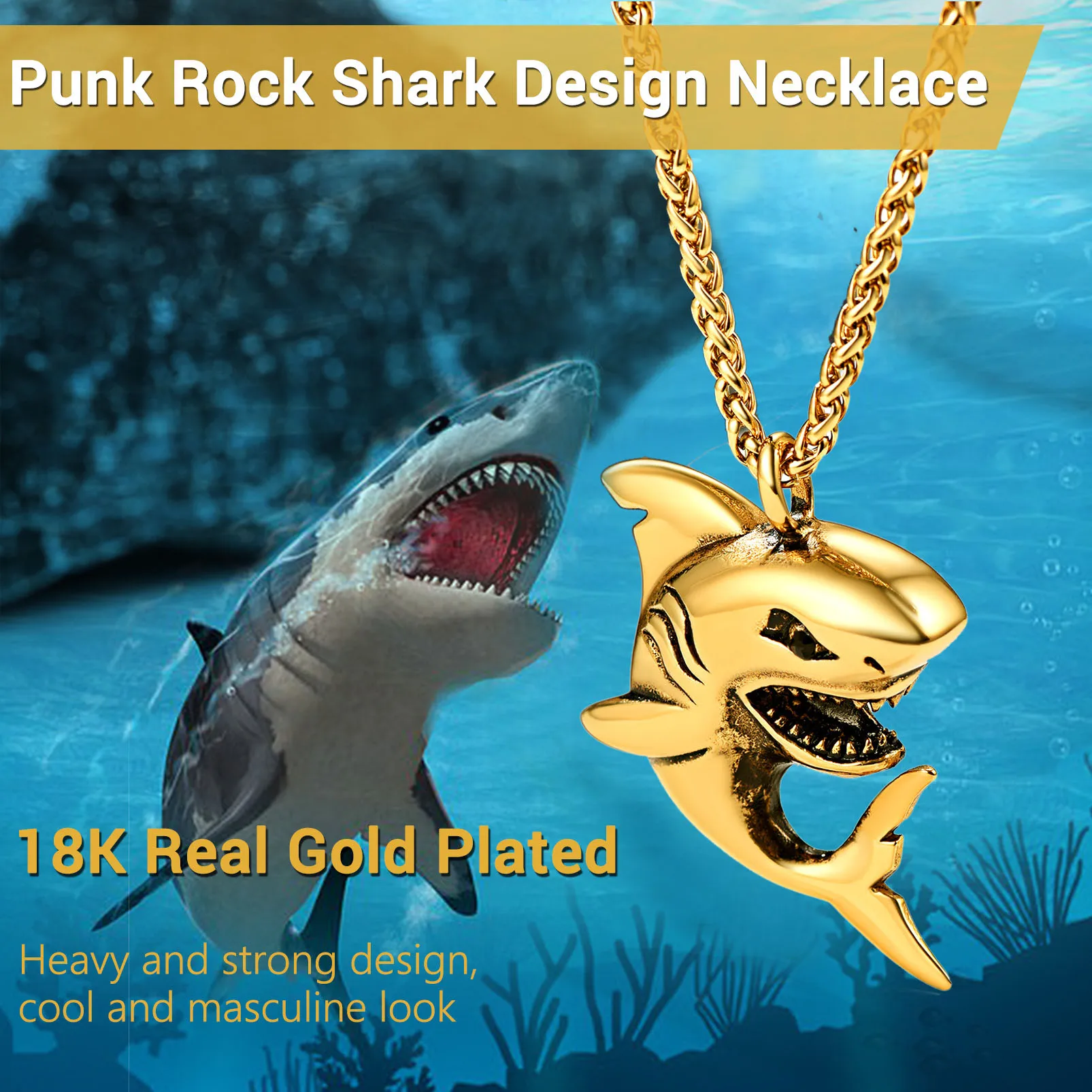 U7 Big Shark Pendant Necklace Men Stainless Steel Jewelry Rock Punk Gold/Black Ocean Sea Animal Necklaces Father's Gifts P1116