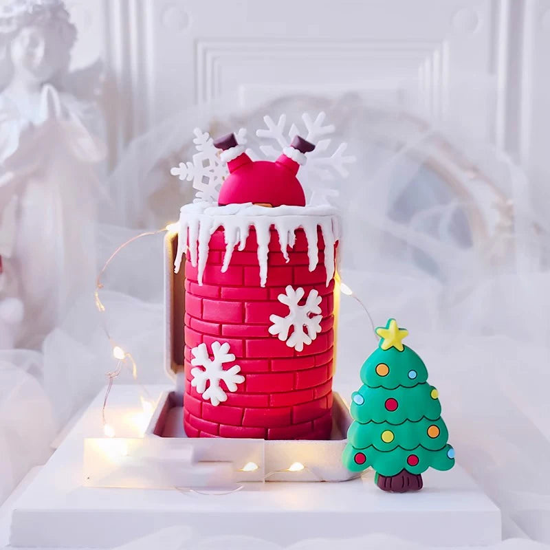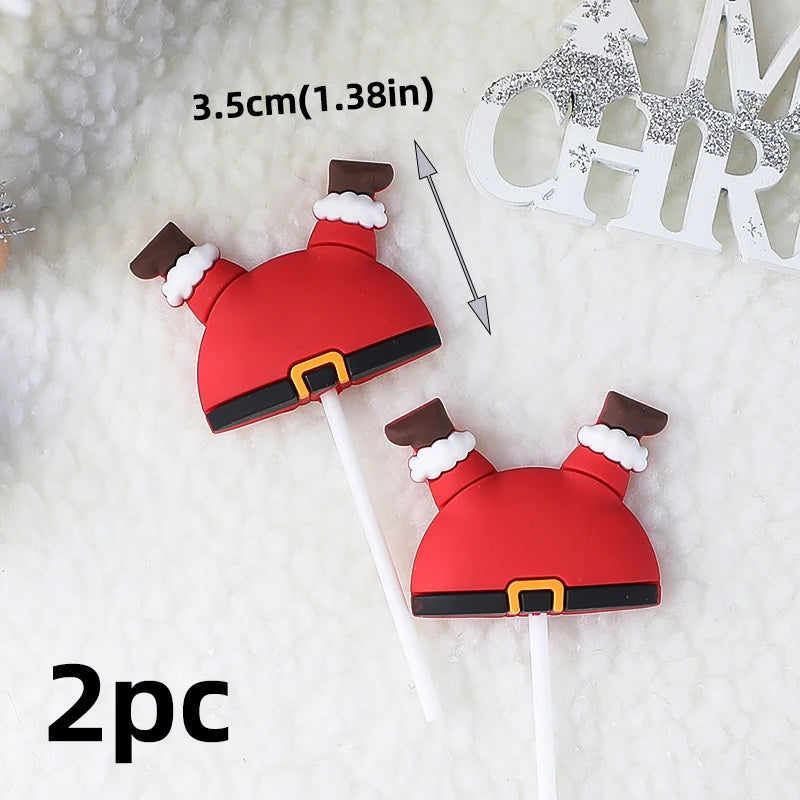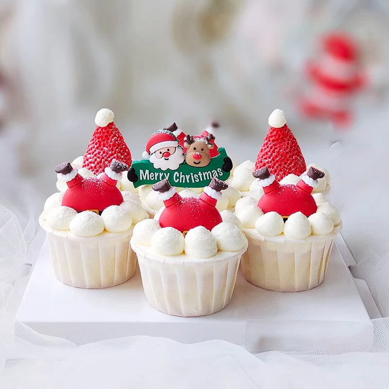2025 Christmas Cake Decoration Lying Santa Claus Letters Merrychristmas Cake Toppers Christmas Tree Mini Santa Cupcake Toppers