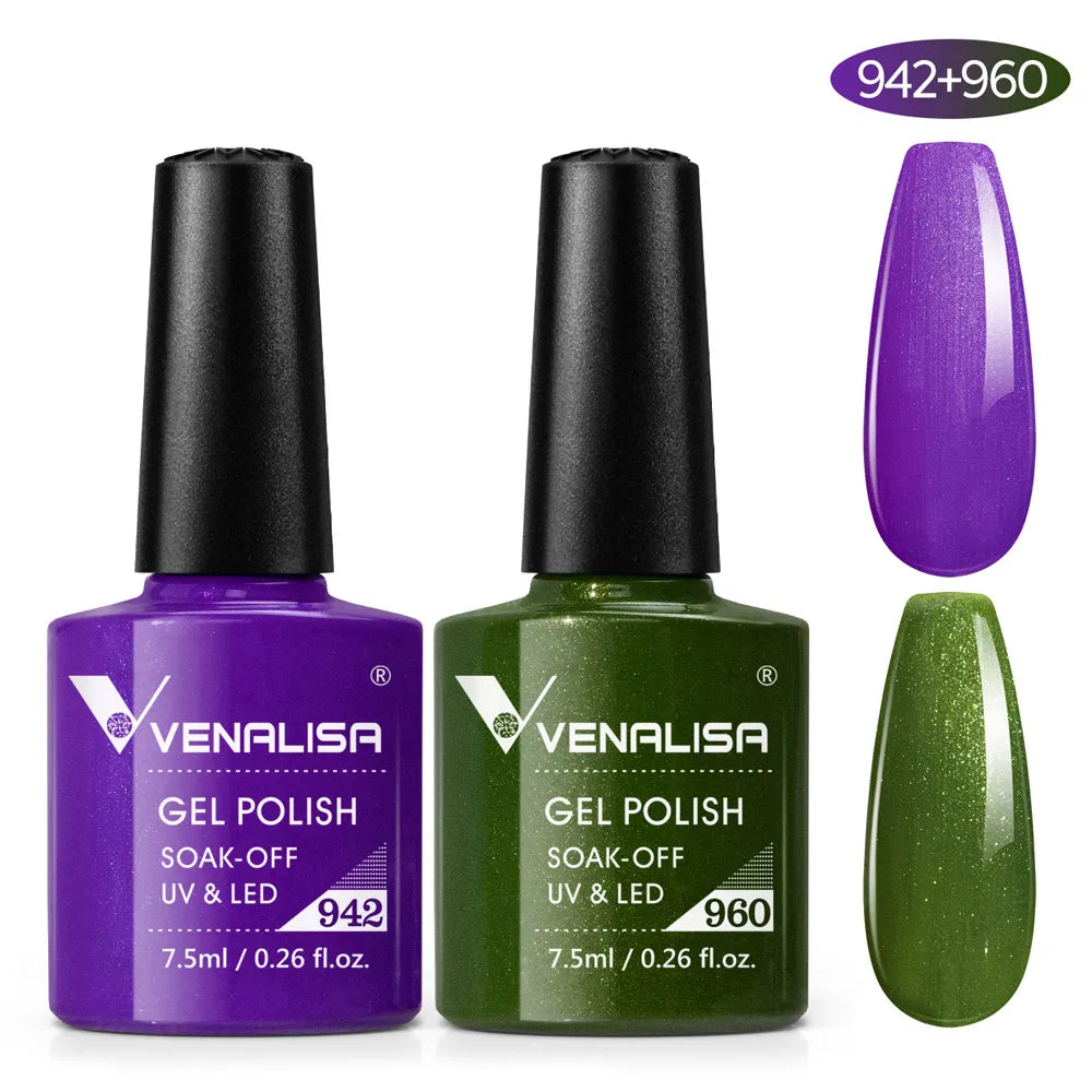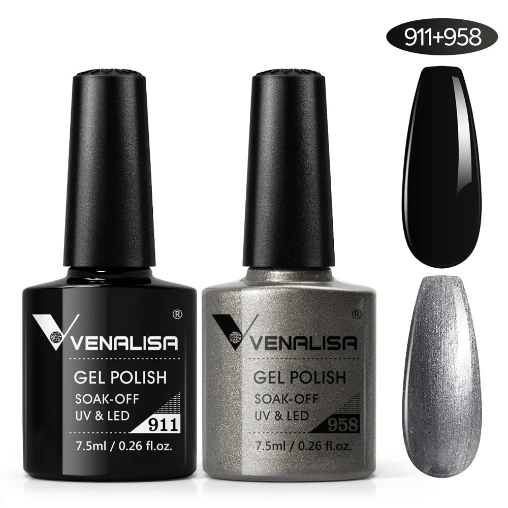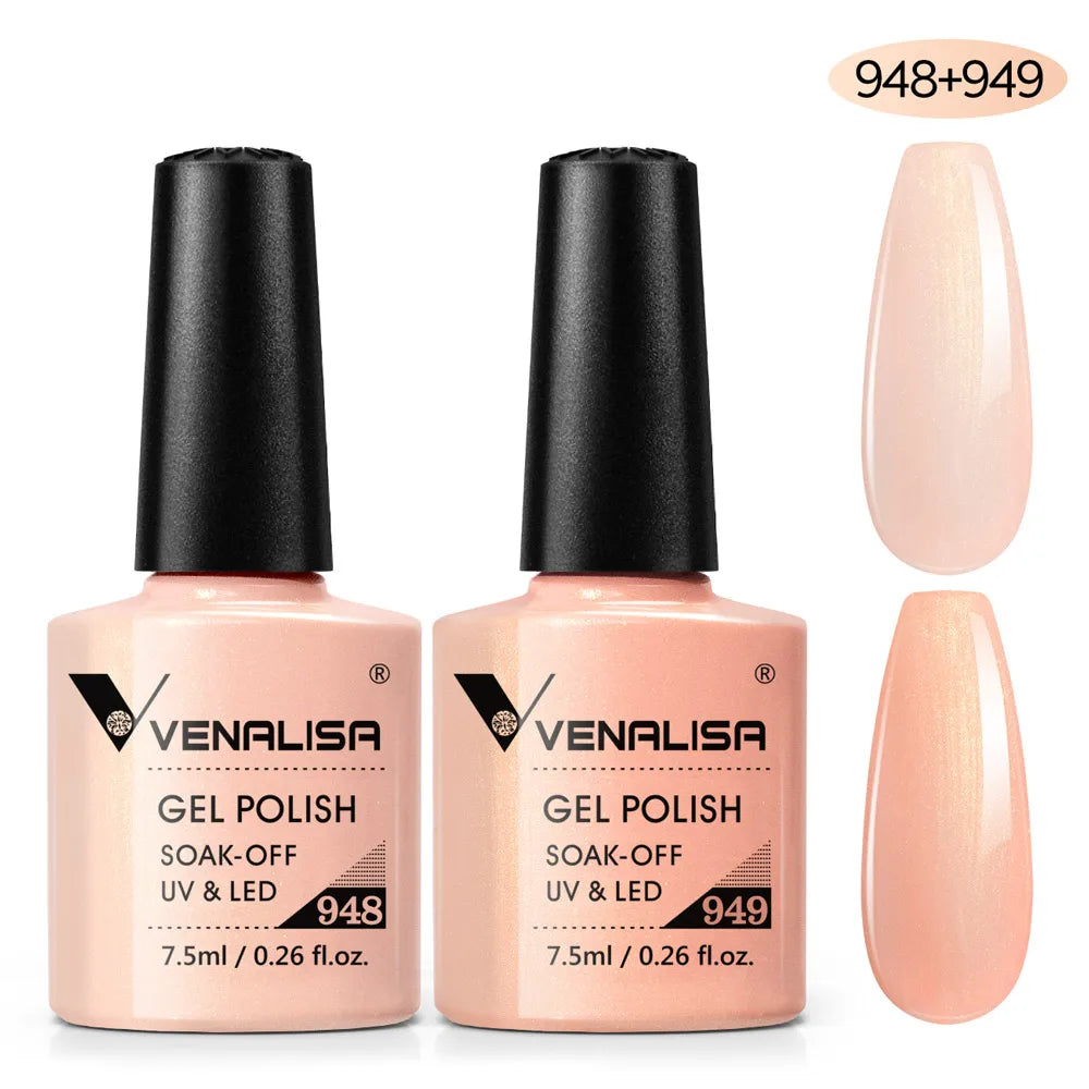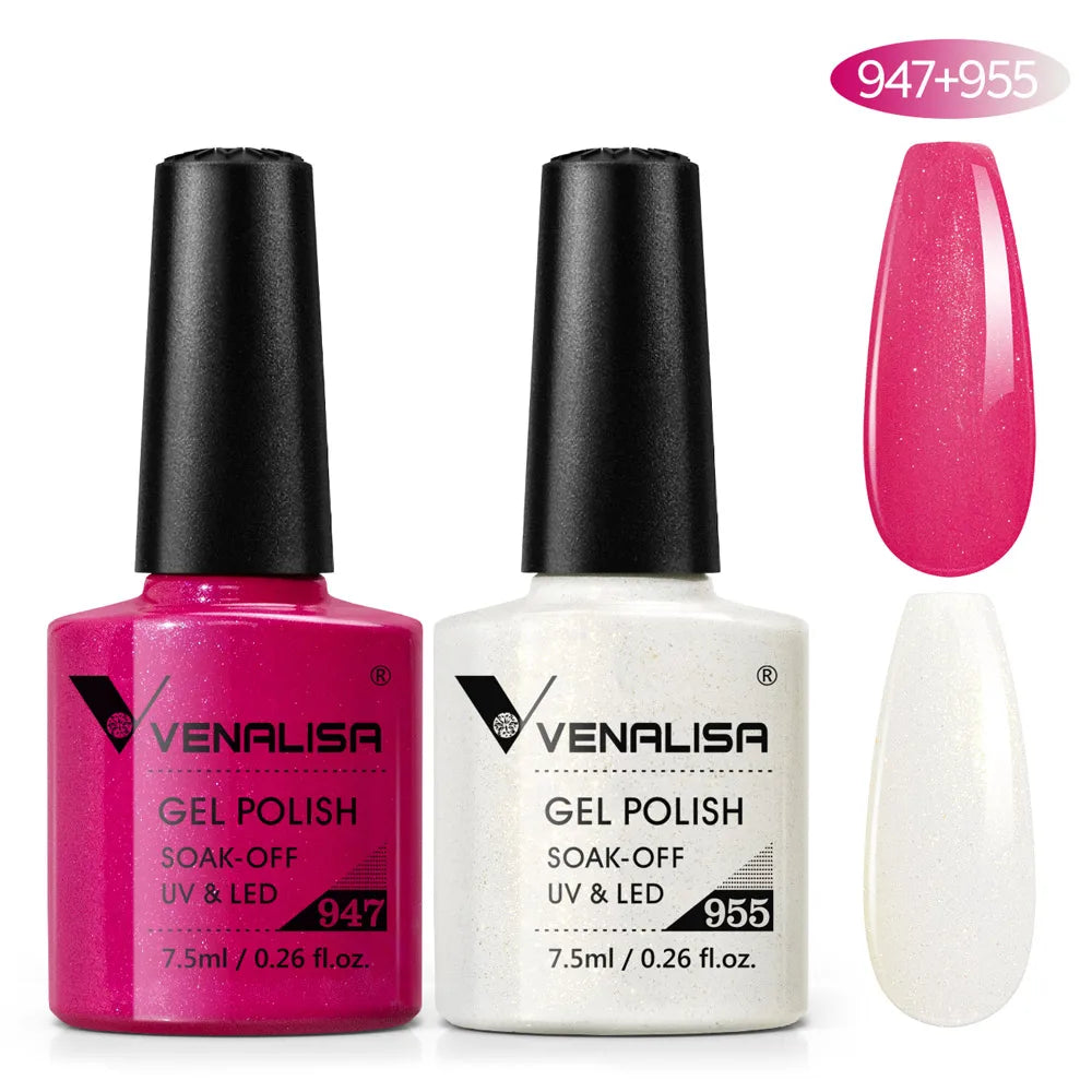 2pcs*7.5ml VENALISA Nail Gel Polish Glitter Gel Lacquer Base Nowipe Top Nail Art Salon Soak off Organic UV LED Nail Gel Varnish