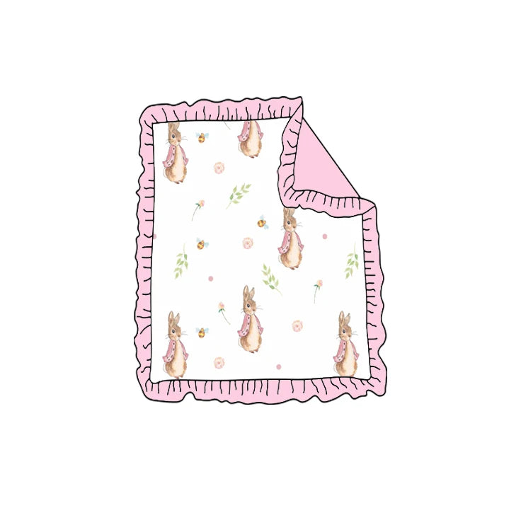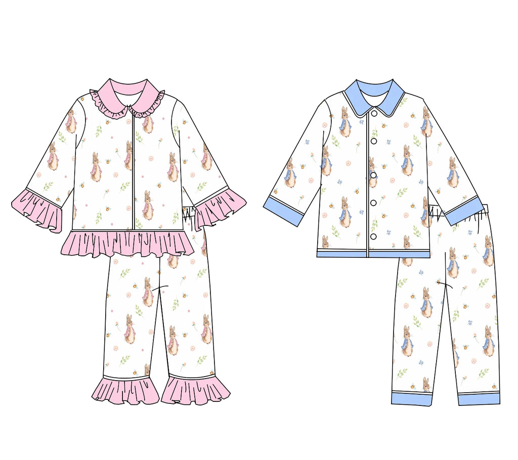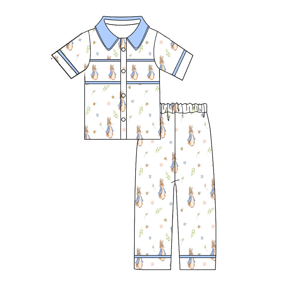 Easter boutique children's suit lapel lace short sleeve elastic rabbit flower print trousers girls boys trousers pajamas set
