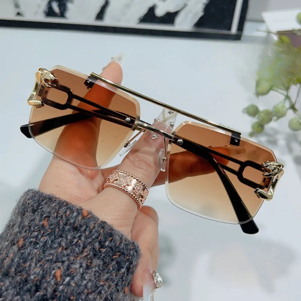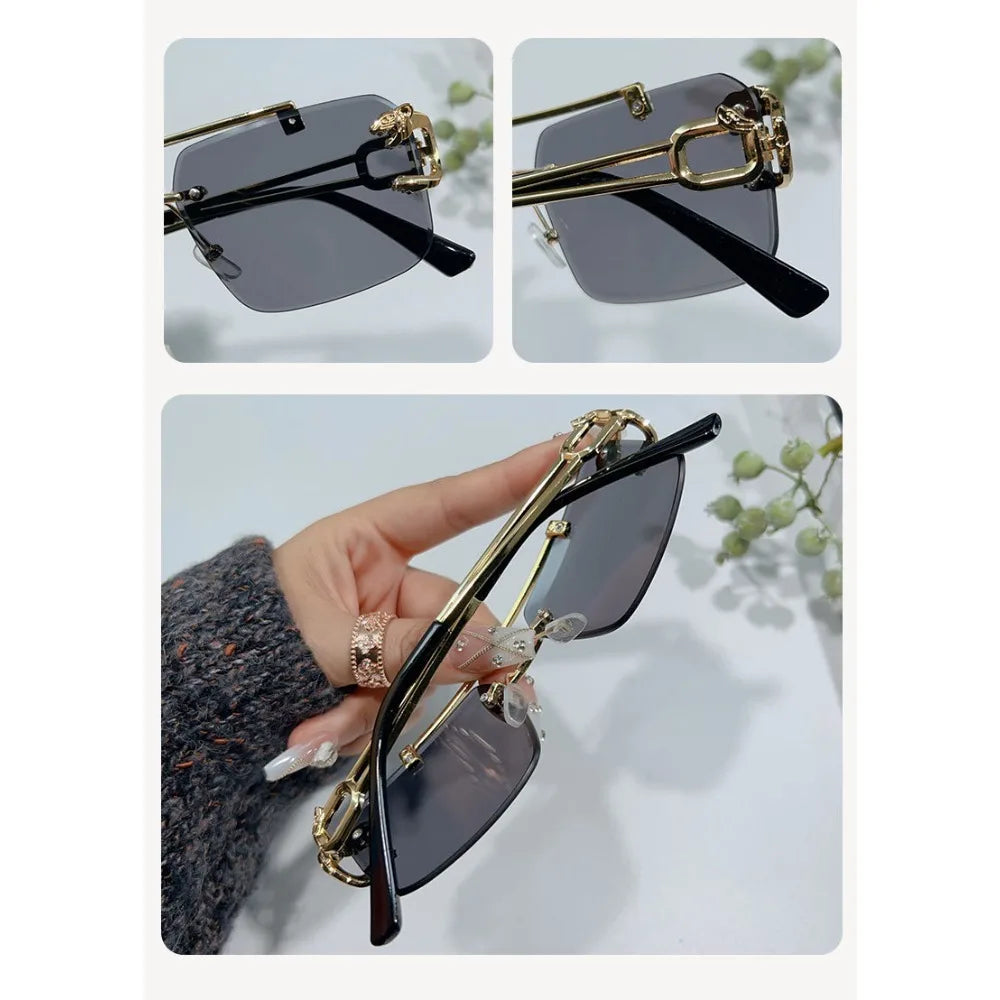 Fashion Metal Leopard Rimless Sunglasses Double Bridges Gradient Ocean Film Shades