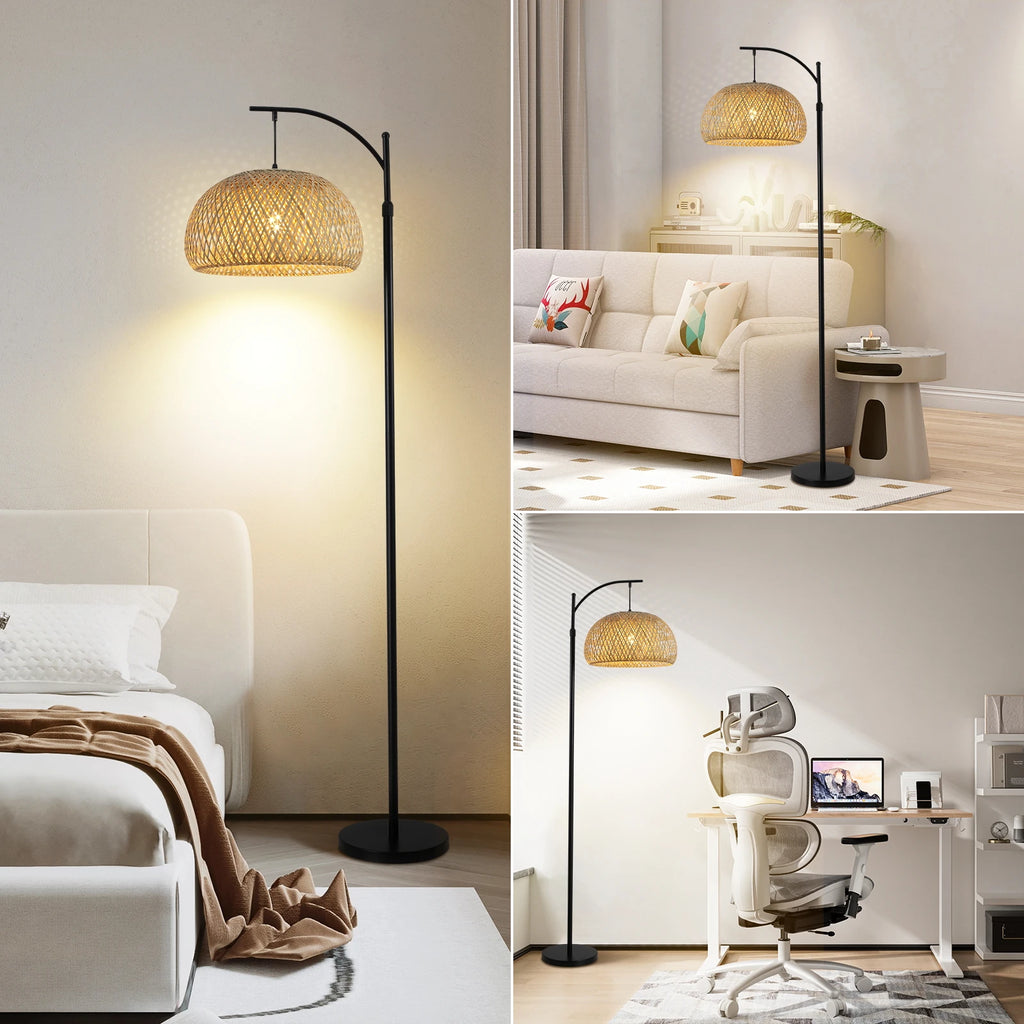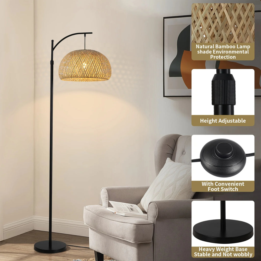 Floor Lamp With Big Size Bamboo Rattan Shade, Boho Farmhouse Rustic Floor Lamps For Living Room /Bedroom(Bulb Not Included)
