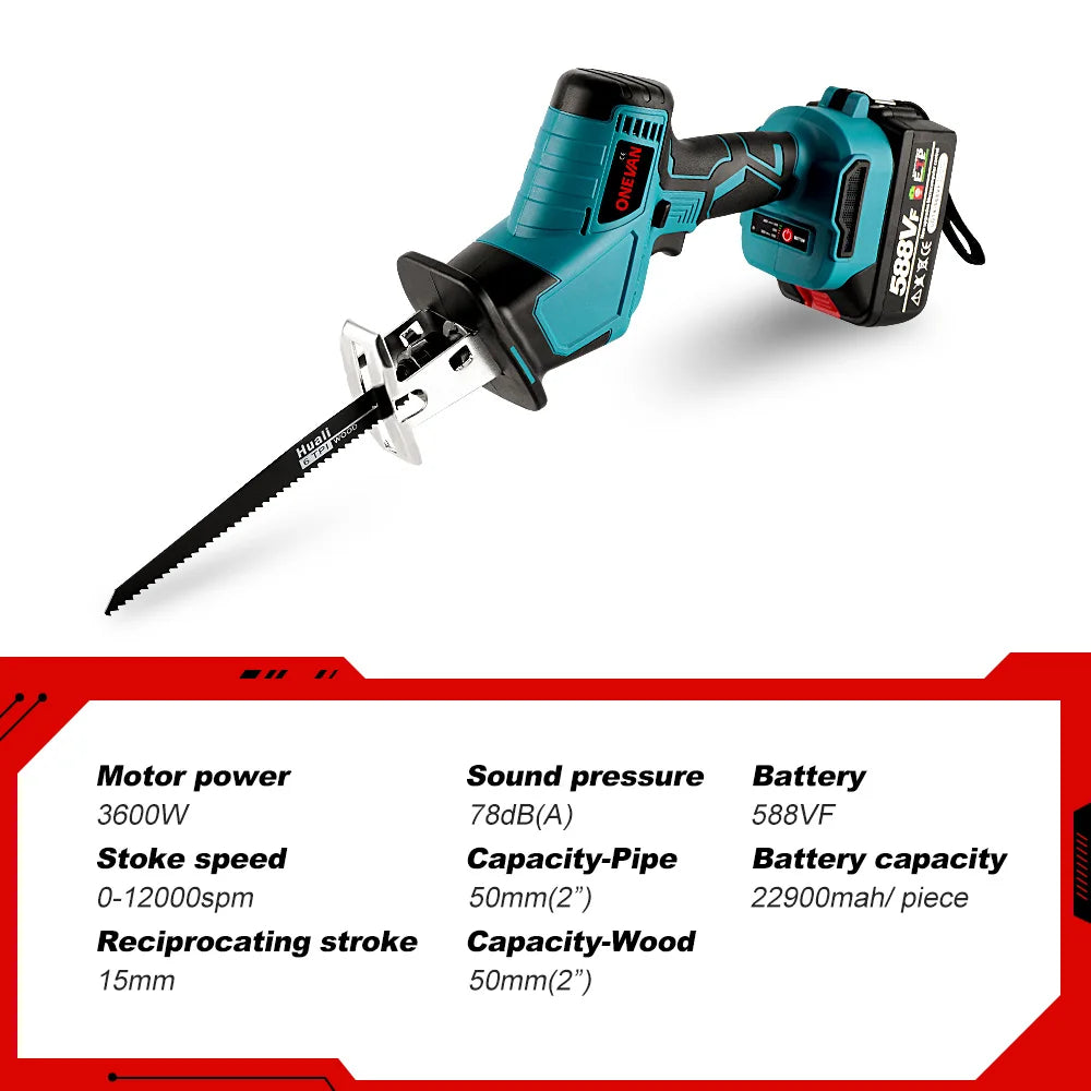 ONEVAN 3600W Brushless Cordless Reciprocating Saw 12000SPM Wood Metal Pipe Cutting Saw Home Power Tools For Makita Battery Pin