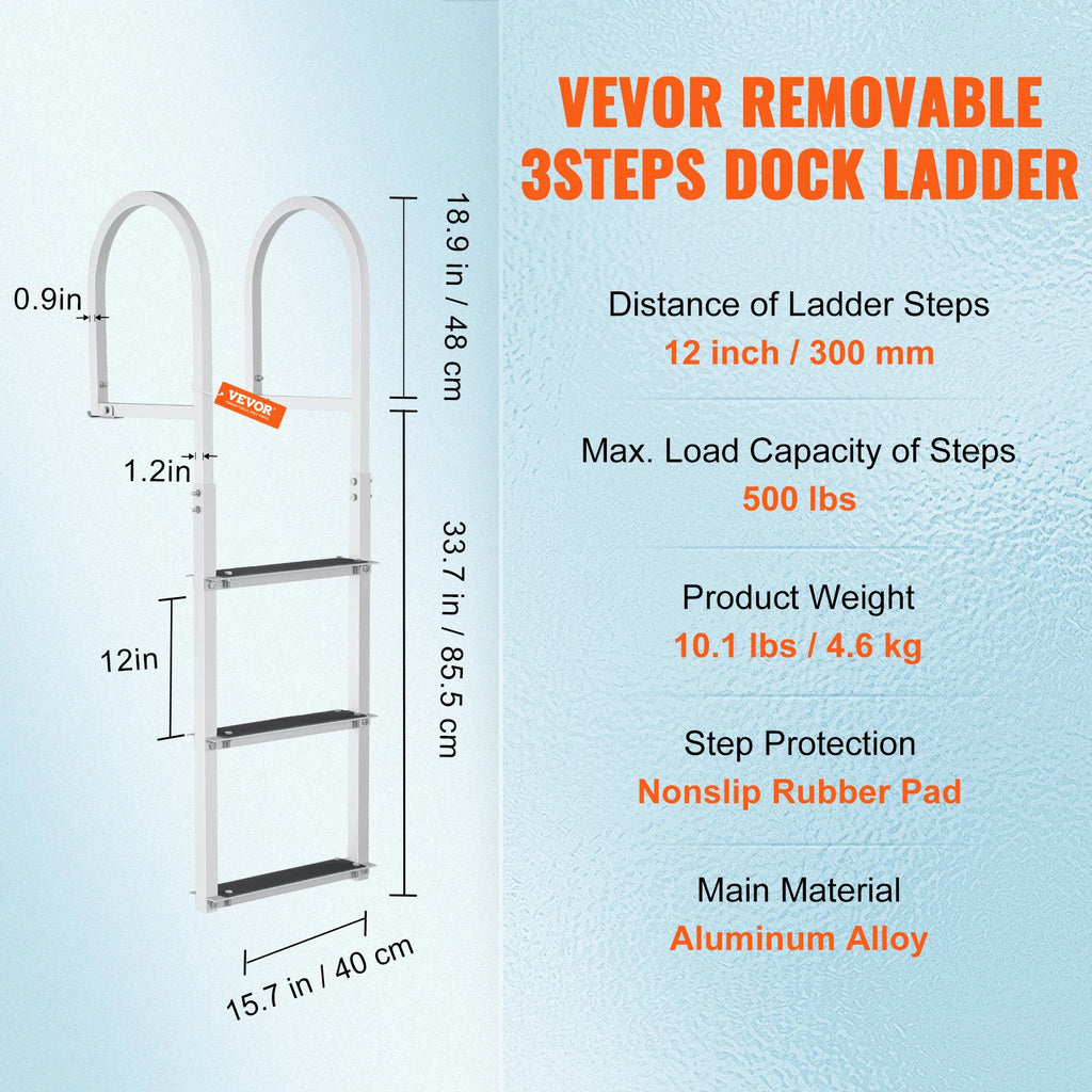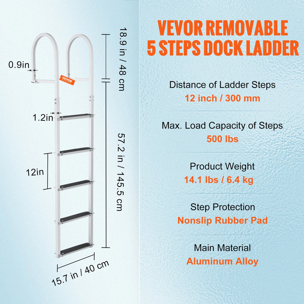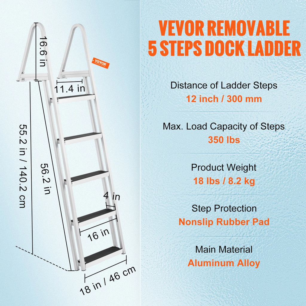 This SucceBuy detachable dock ladder is made of aluminum alloy frame, ensuring security, stability, and better corrosion resistance. The 3.1in widened pedals include nonslip rubber pads for offering strong 350/500lbs load capacity and friction force.