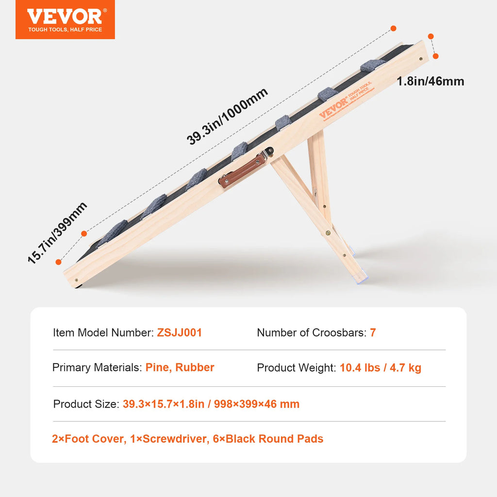 Sturdy and Durable: Crafted from premium pine wood, this solid wood adjustable dog ramp is exceptionally stable and can support pets weighing up to 100 lbs. The addition of soft rubber footpads at the bottom ensures stability during your pet's ascent.