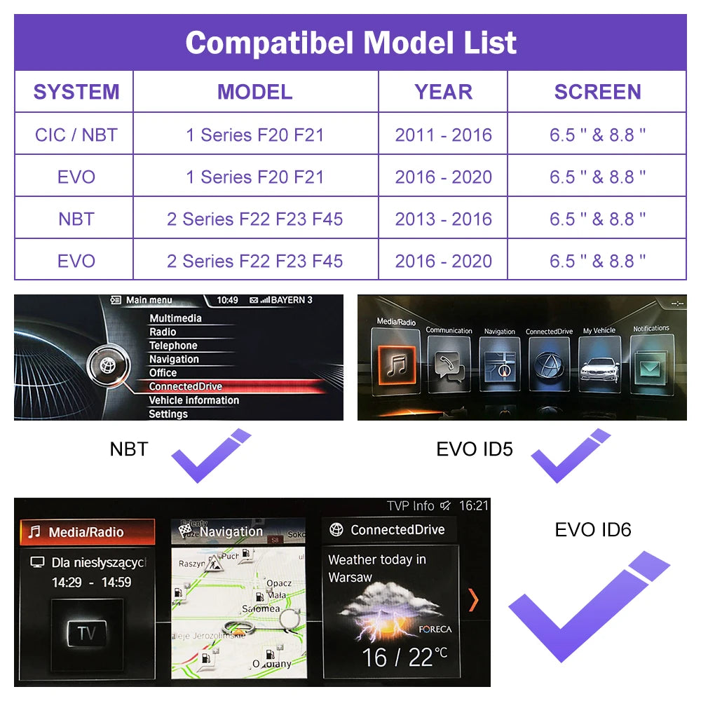 Wireless CarPlay For BMW Series 1 2 F20 F21 F22 F23 F45 2012-2020 NBT,EVO, with Android Auto Mirror Link AirPlay GPS Car Player