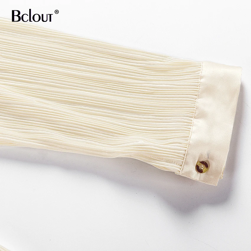 Bclout Long Sleeve Autumn Winter Shirts Blouses Woman Pleated Work Ladies Tops Elegant Loose Women Blouse Khaki Solid Tops 2022
