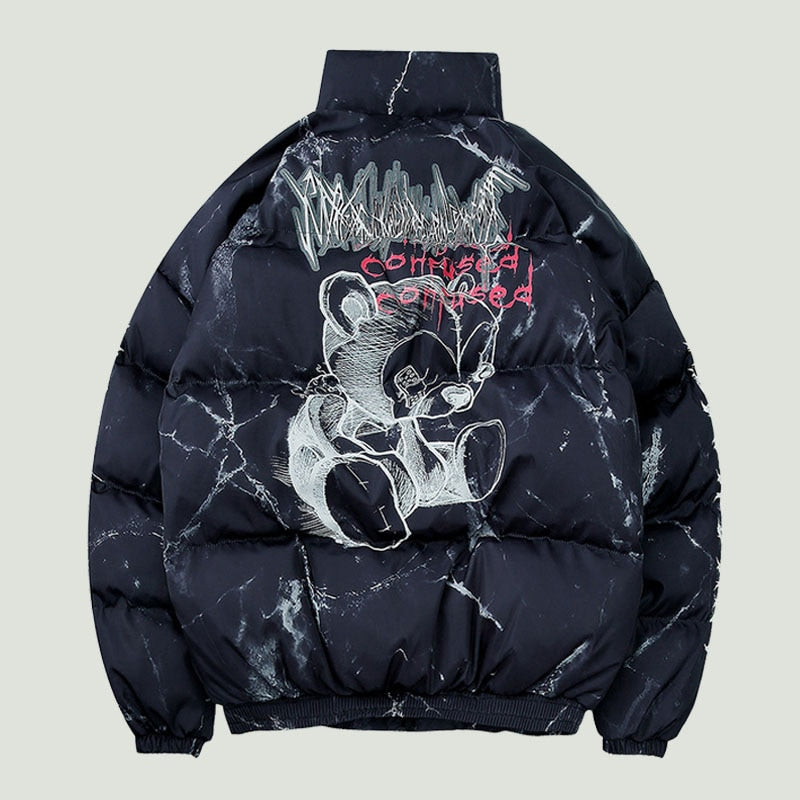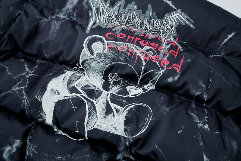 Hipster Hip Hop Padded Parkas Mens Harajuku Cartoon Bear Printed Winter Thicken Warm Streetwear Casual Loose Down Jacket Unisex