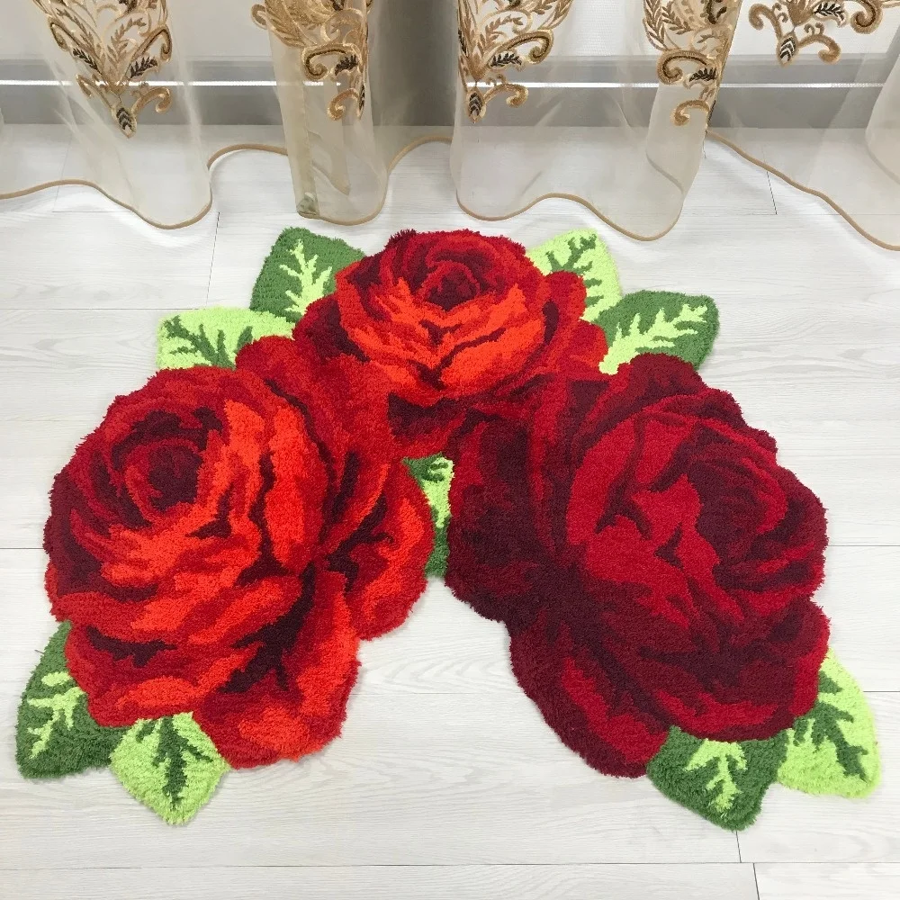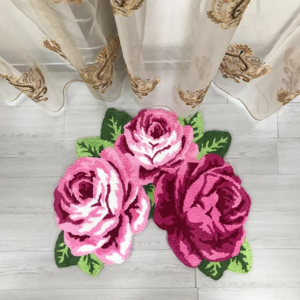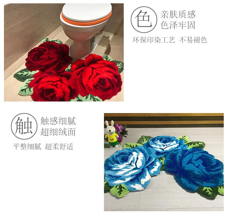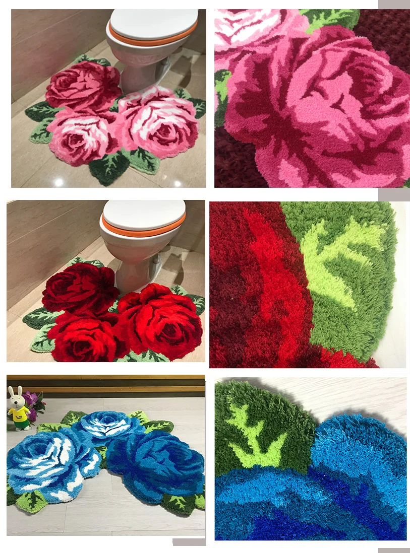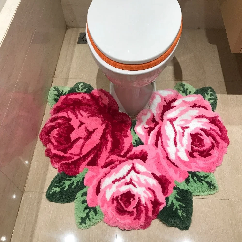 New arrival hot sale beautiful and soft rose rug for bathroom rose rug for stool rug for stool