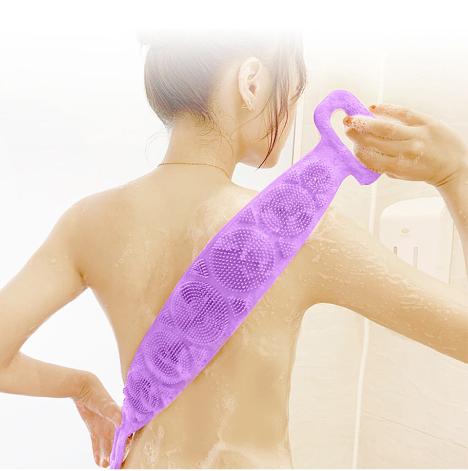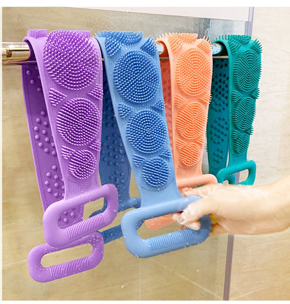 Silicone Gel Scrub Bath Brush Strip Massage Back Rubs Bathing Tape Long Back Rubbing Sided Silicone Scrub Body Skin Bathroom