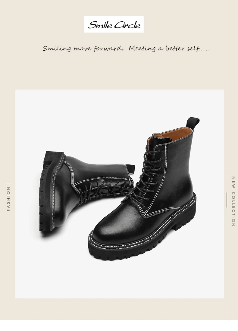 Smile Circle Ankle Boots Women Flats Platform shoes Fashion Round toe Comfortable Casual Short Boots Ladies