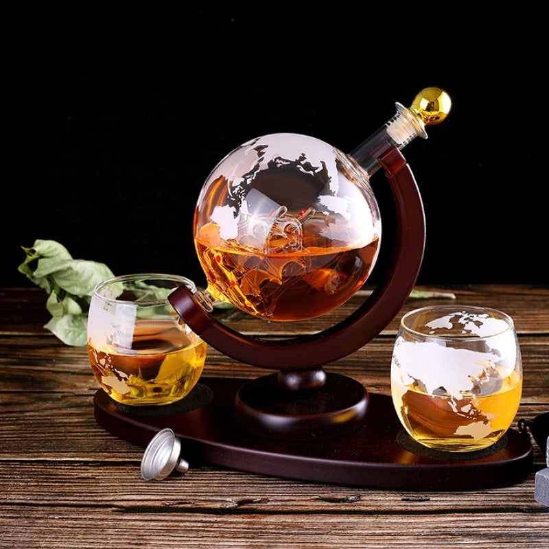1. Hand Blown elegant Whiskey Decanter dispenser featuring an etched globe design and antique ship in the bottle will undoubtedly enhance your drinking experience while making a bold impression.