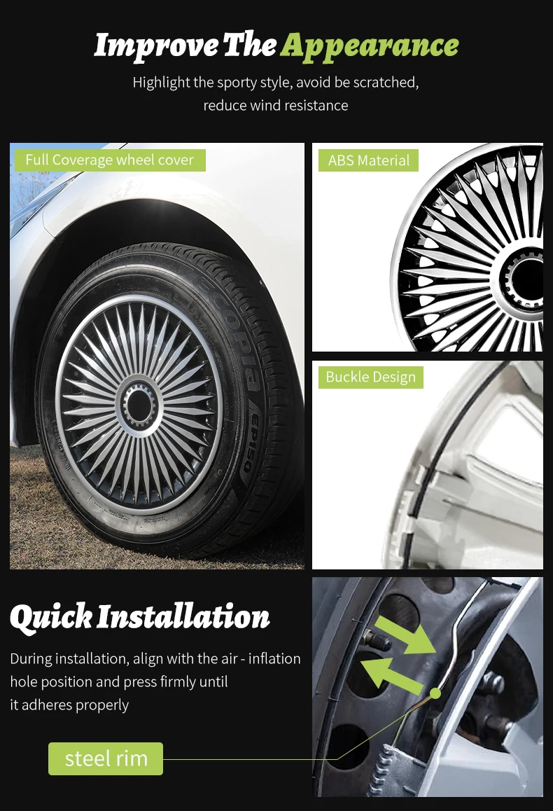 16inch Blade Style Hub Cap Cover for Iron Rim Wheel Cover Set of 4 Steel Wheel Cover Replacement Hubcap for R16 Tire