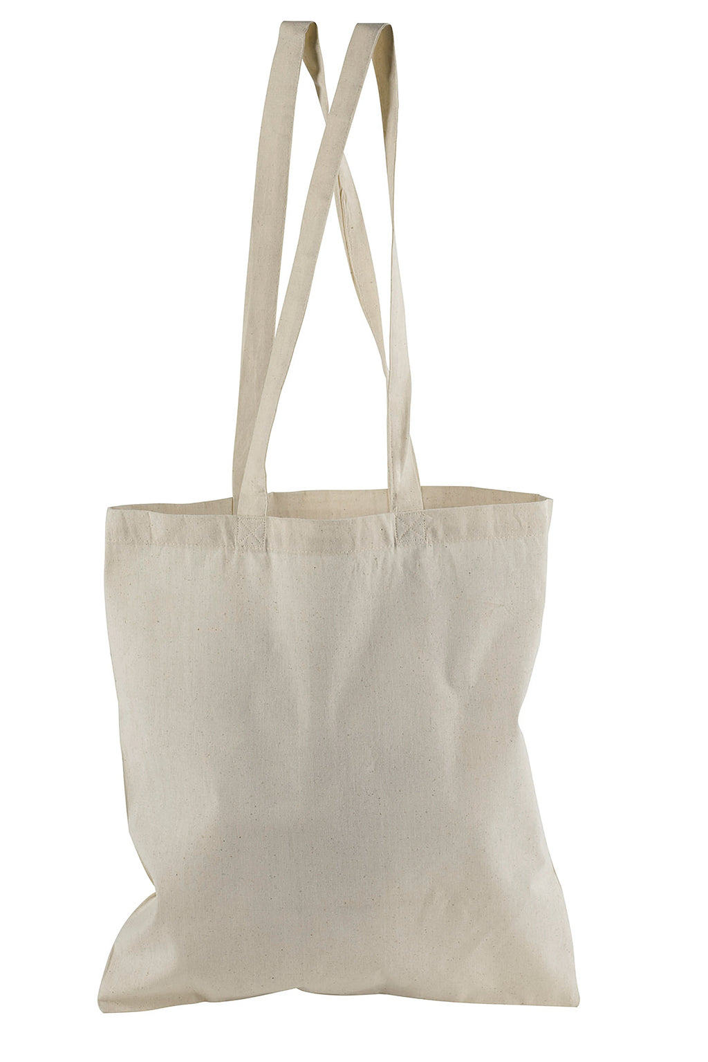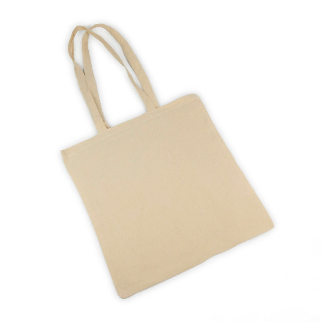 100% cotton fabric bag recyclable, washable, reusable, biodegradable.