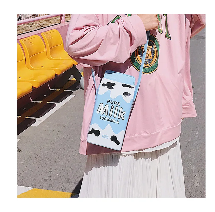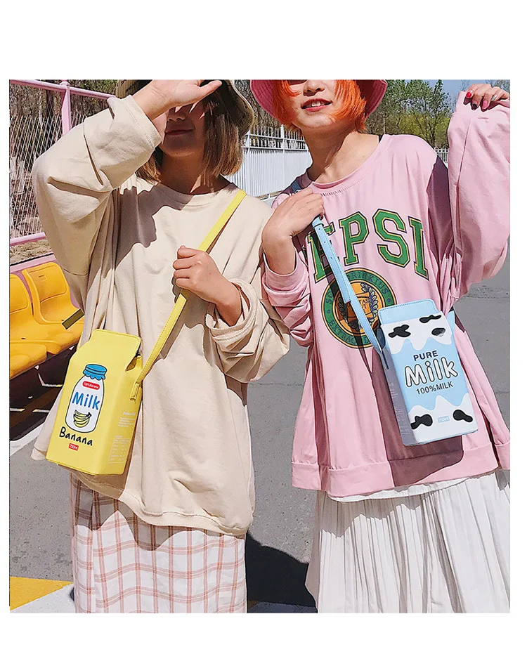 Fun Milk Orange Juice Box Design Young Girl's Shoulder Bag Novelty Crossbody Bag for Women Cartoon Purses and Handbags Kawaii