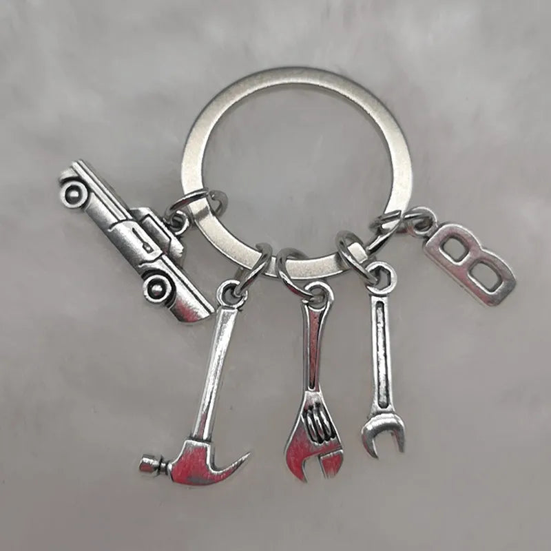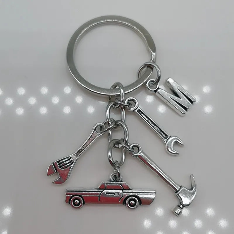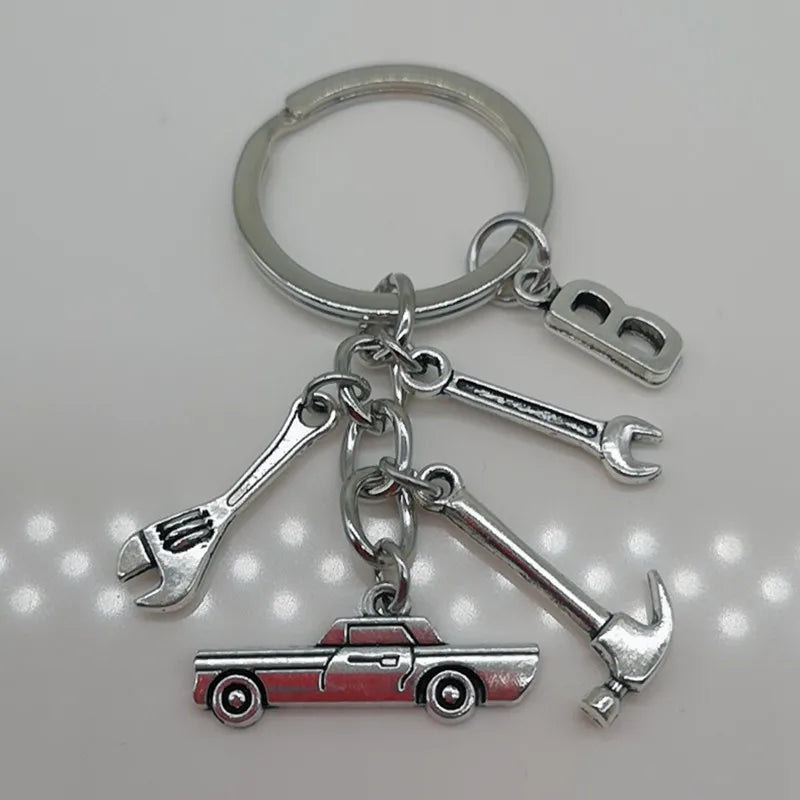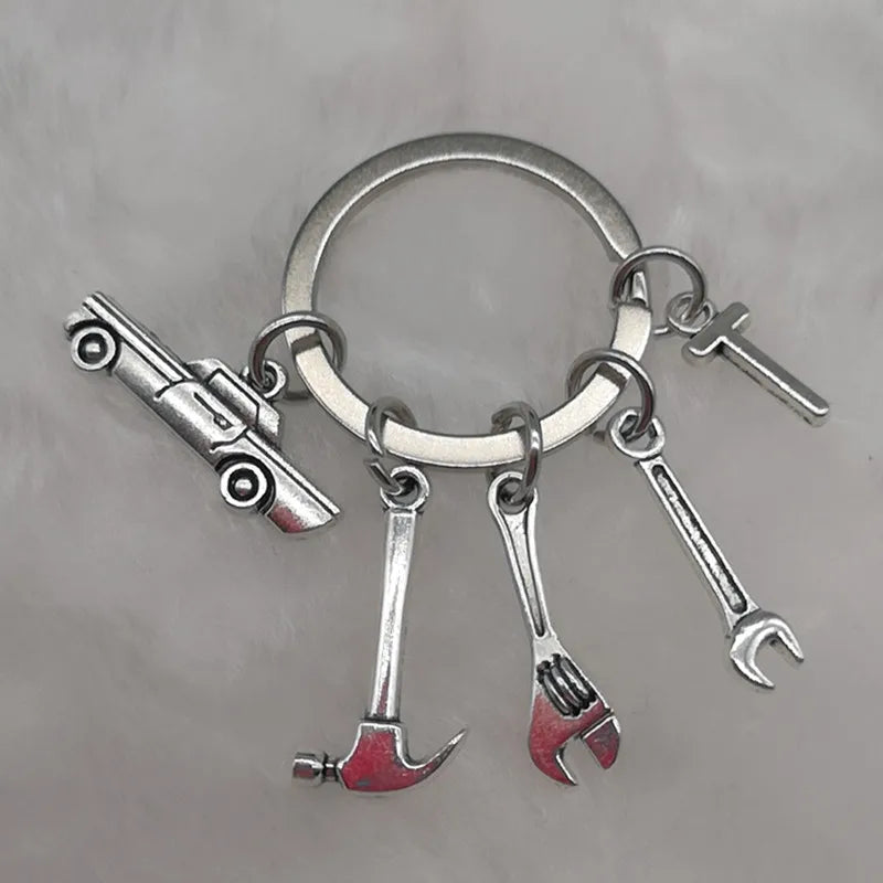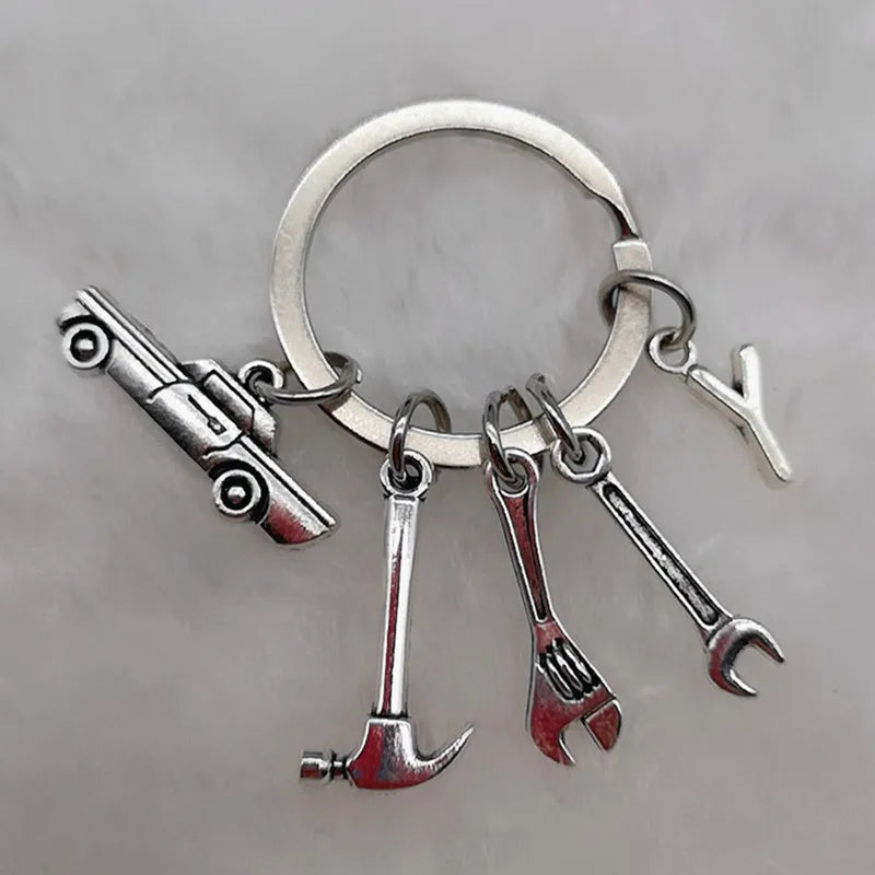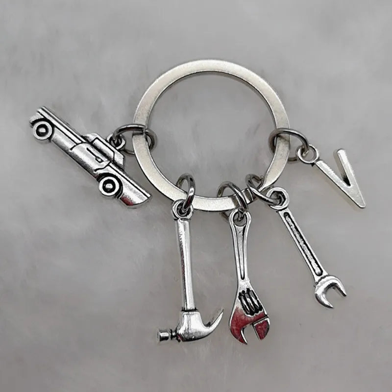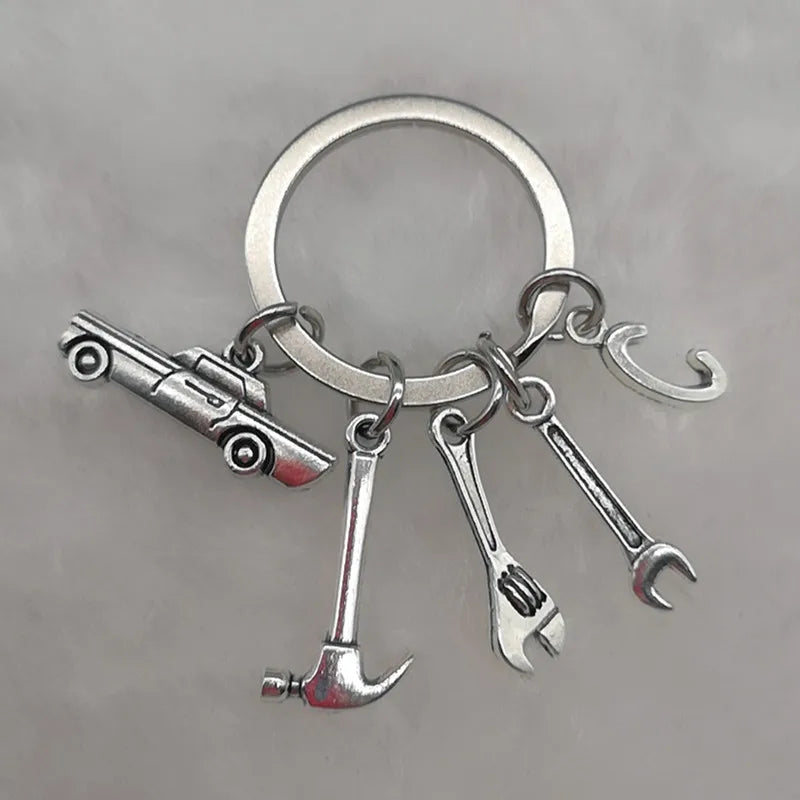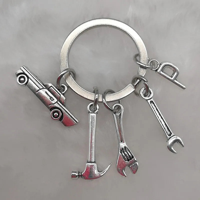 Mechanical Keychain Dad Father Initial Keychain Father's Day Gift Letter A-Z Truck Keychain Truck Key Ring Car Truck Lover Gift