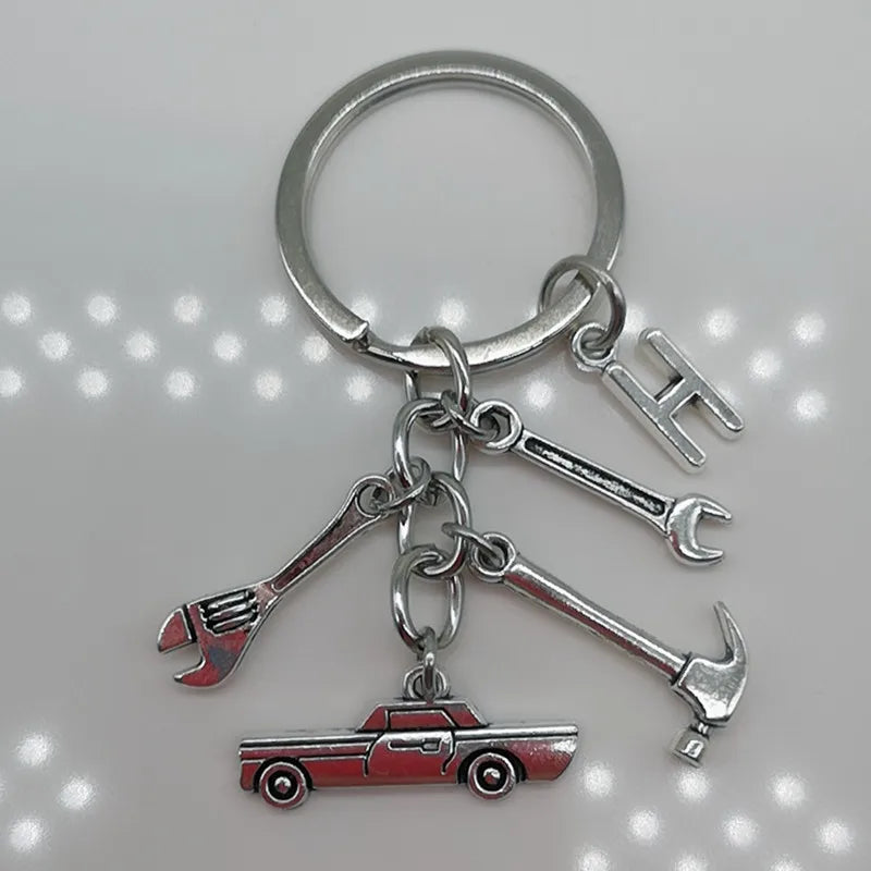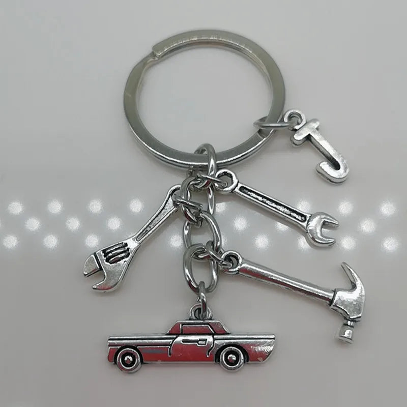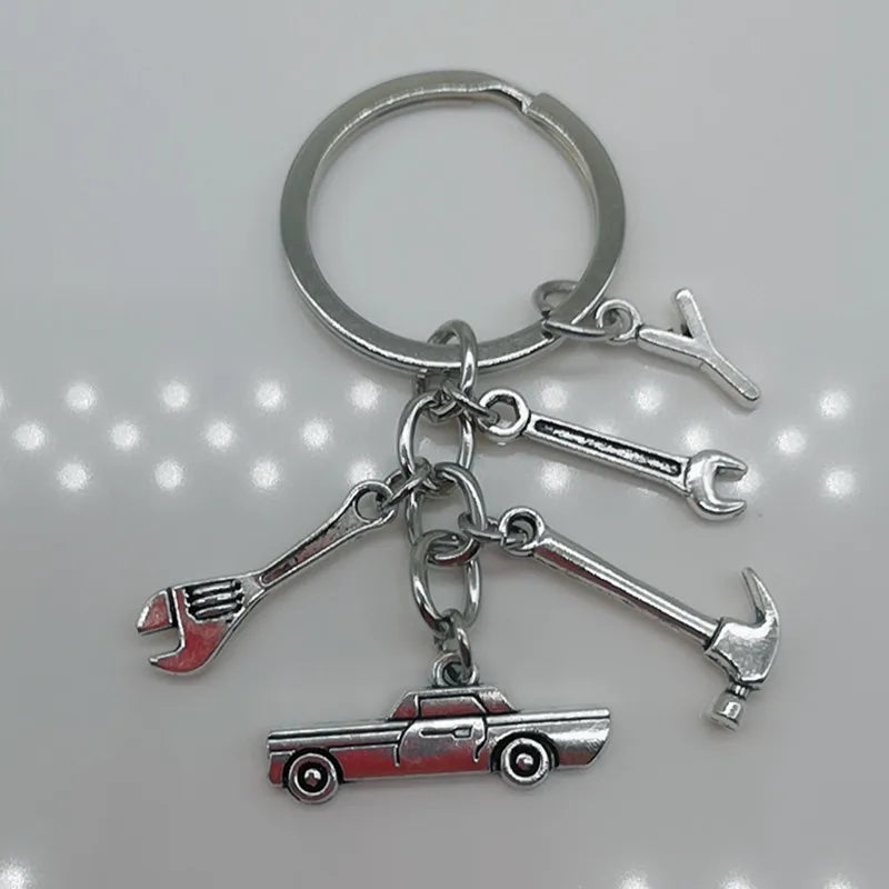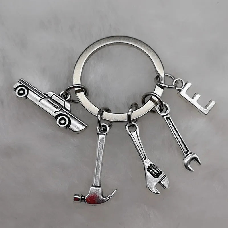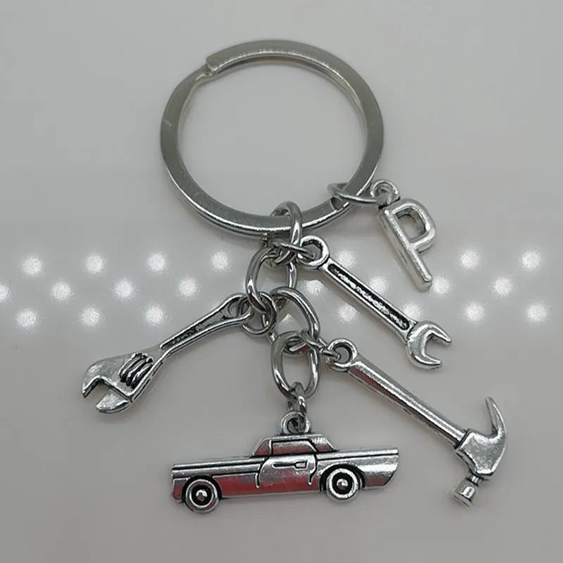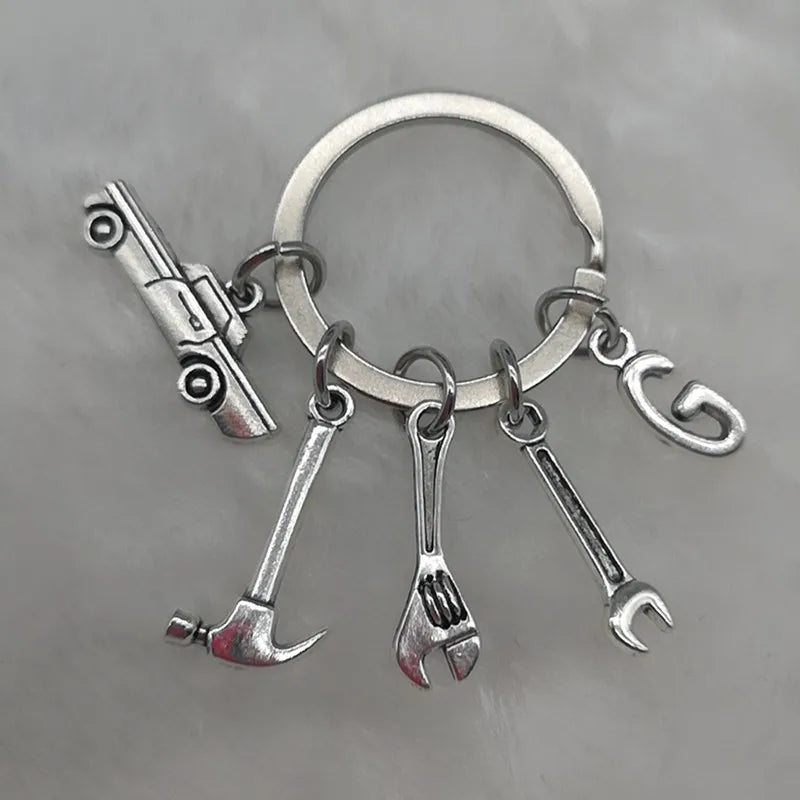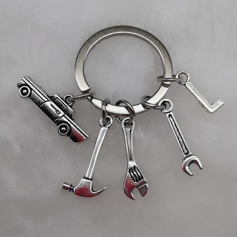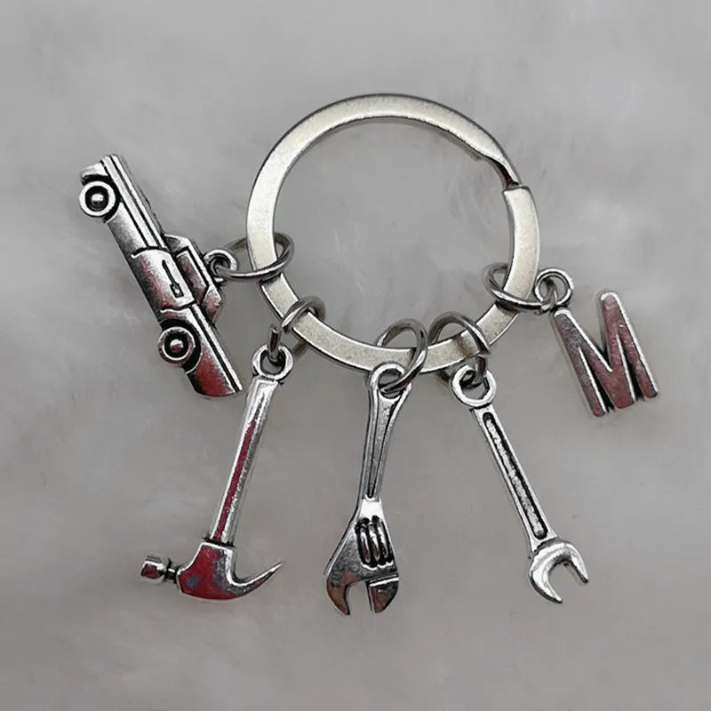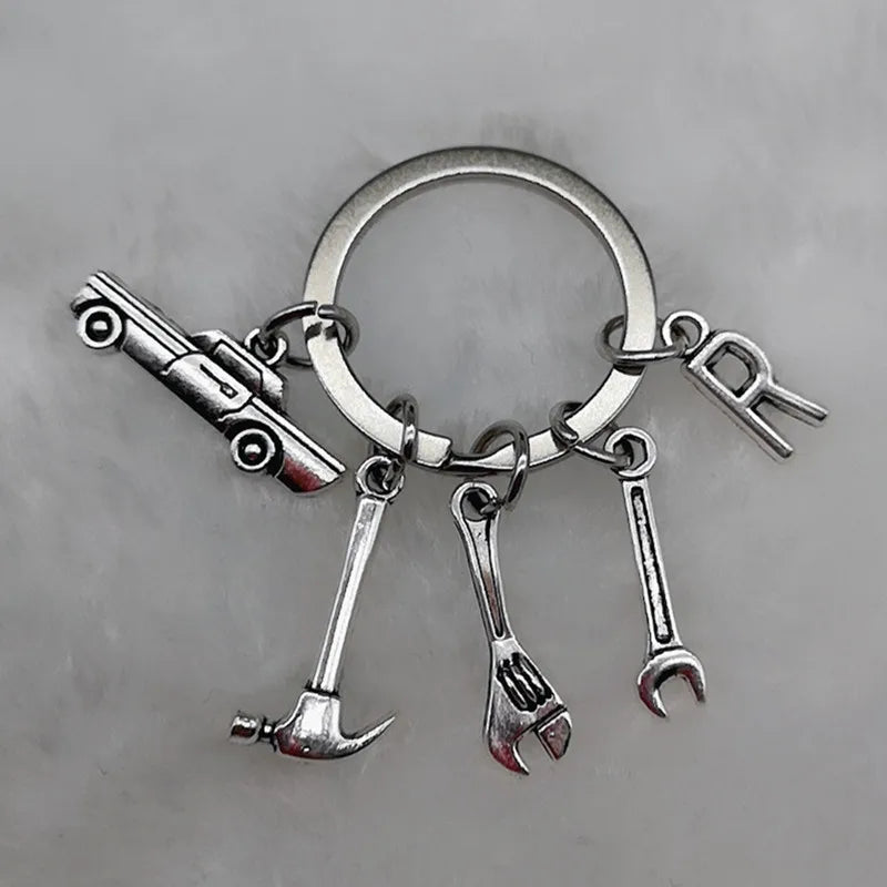 Mechanical Keychain Dad Father Initial Keychain Father's Day Gift Letter A-Z Truck Keychain Truck Key Ring Car Truck Lover Gift