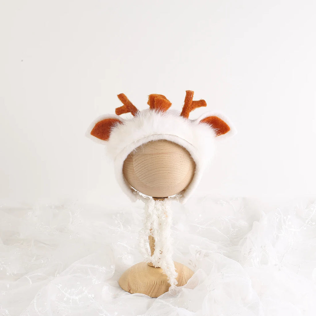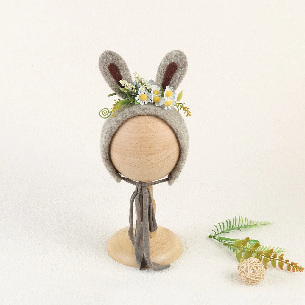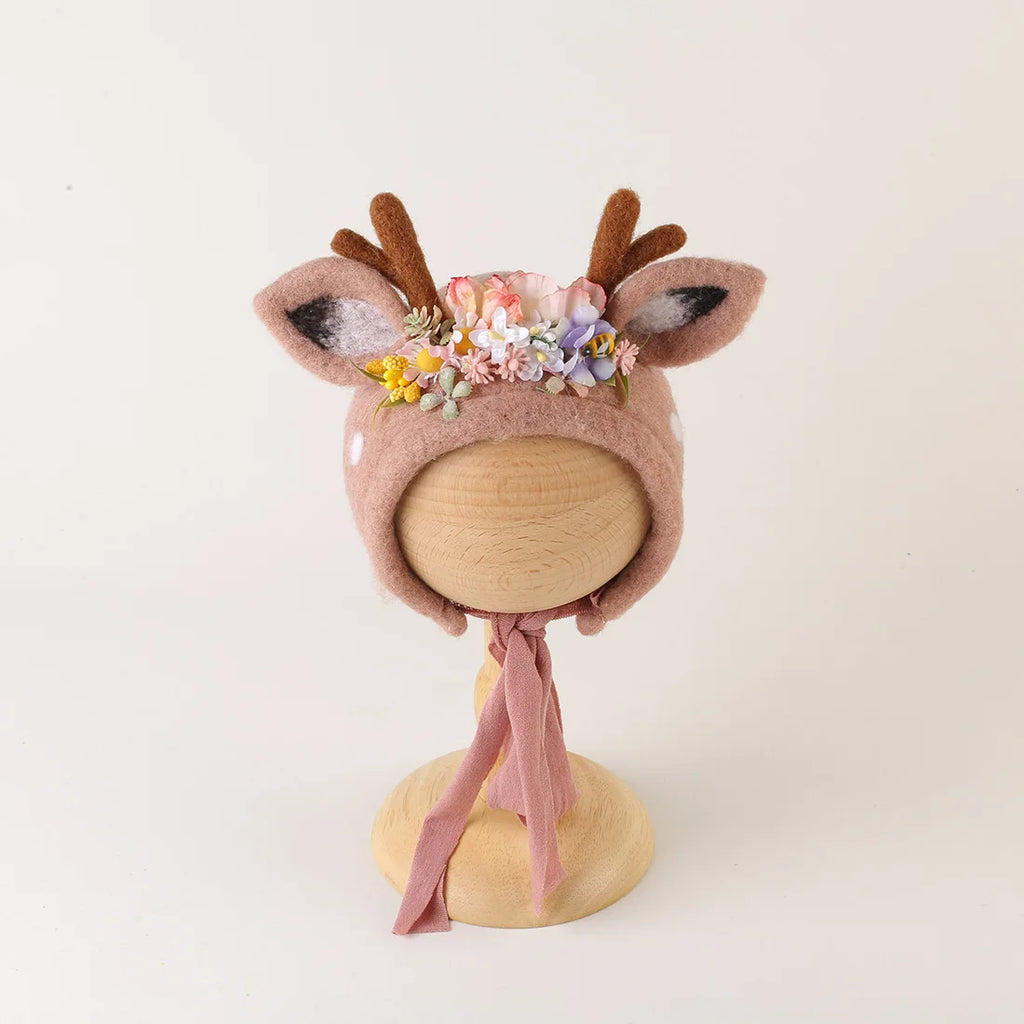 Newborn Wool Felt Fox Flower Bonnet Newborn Photography Props Baby Animal Floral Garden Hat Photo Shoot