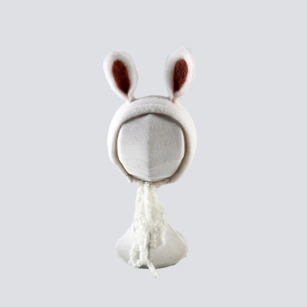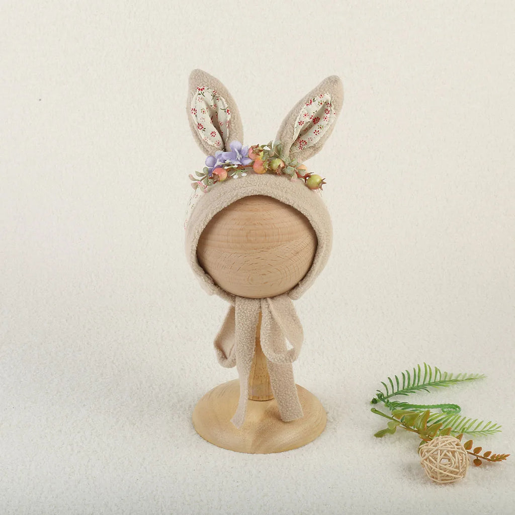 Hand knit Newborn baby bonnet wool felt Flower Garden Rabbit ears hat photography prop crafted by PW-PROPS in Gorgeous Wool/Cotton yarn. This bonnet will fit a newborn Girl'/Boy in the first and Third week or so of life, perfect for newborn photography. Available in Multiple Colors.