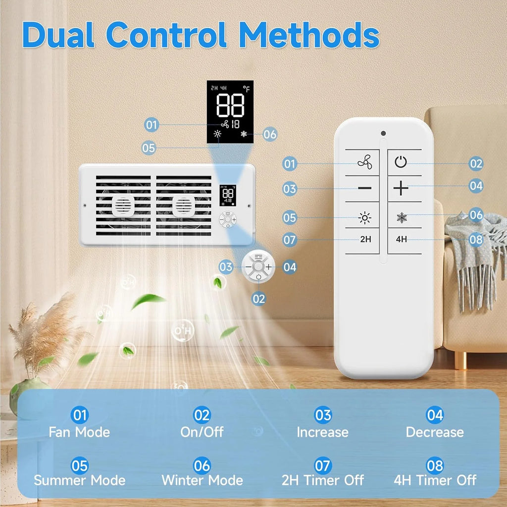 Register Booster Fan 4*10Inch Smart Heating Cooling AC Vent Fan With Remote Control & Thermostat Control Household Radiator