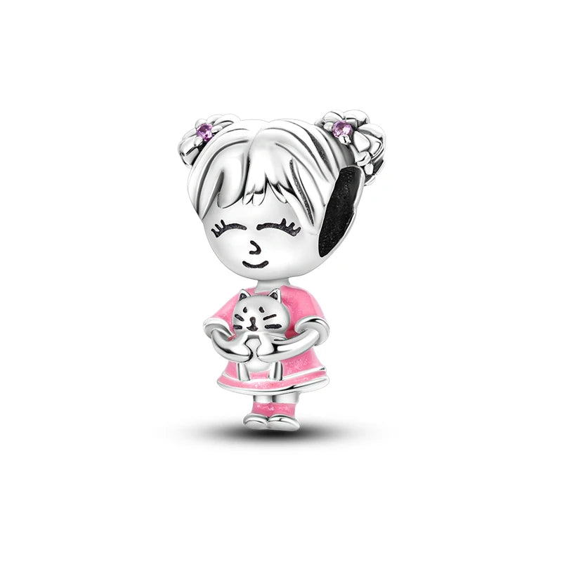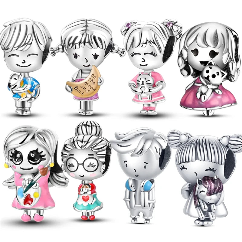 Silver Plated Boy Girl Couple Lovers Beads Charms Zirconium Dangle Fit Original Pandora Bracelet Necklace Jewelry Women Gift