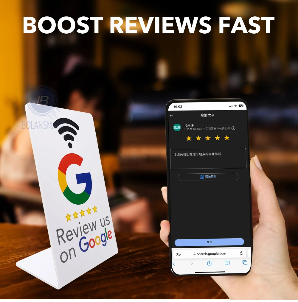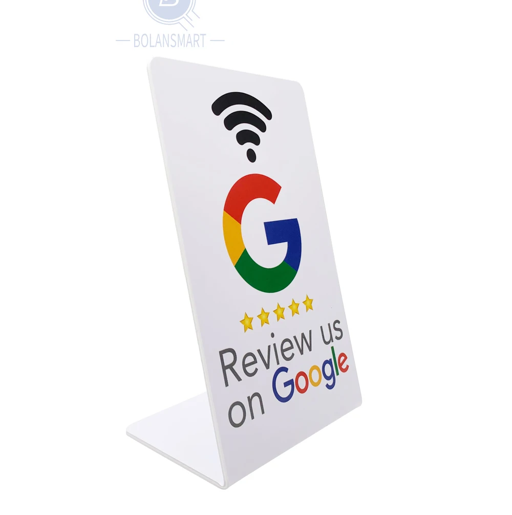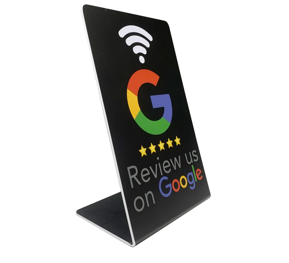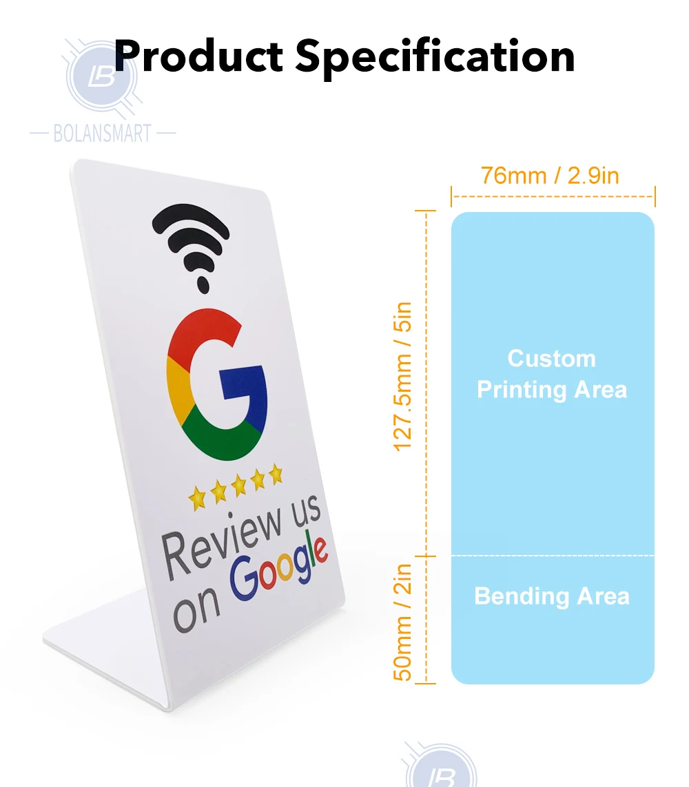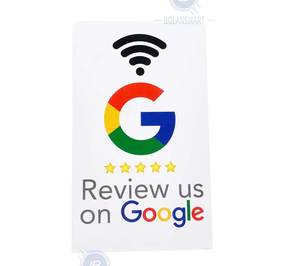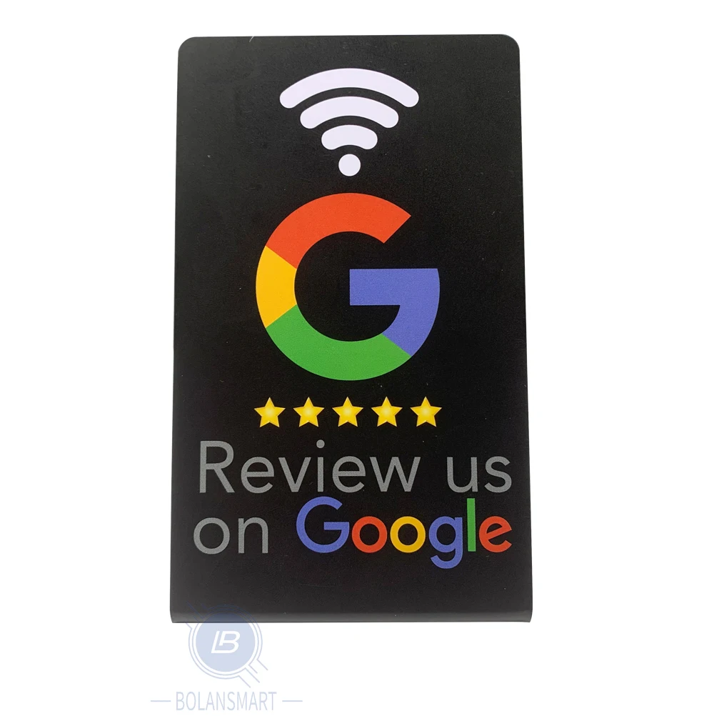 NFC quick link to Google Review or other soical media, you can program the NFC cards with NFC enabled mobile phone with NFC related APP, Such as APP "NFC Tagwriter", and write you google reviews URL into it.