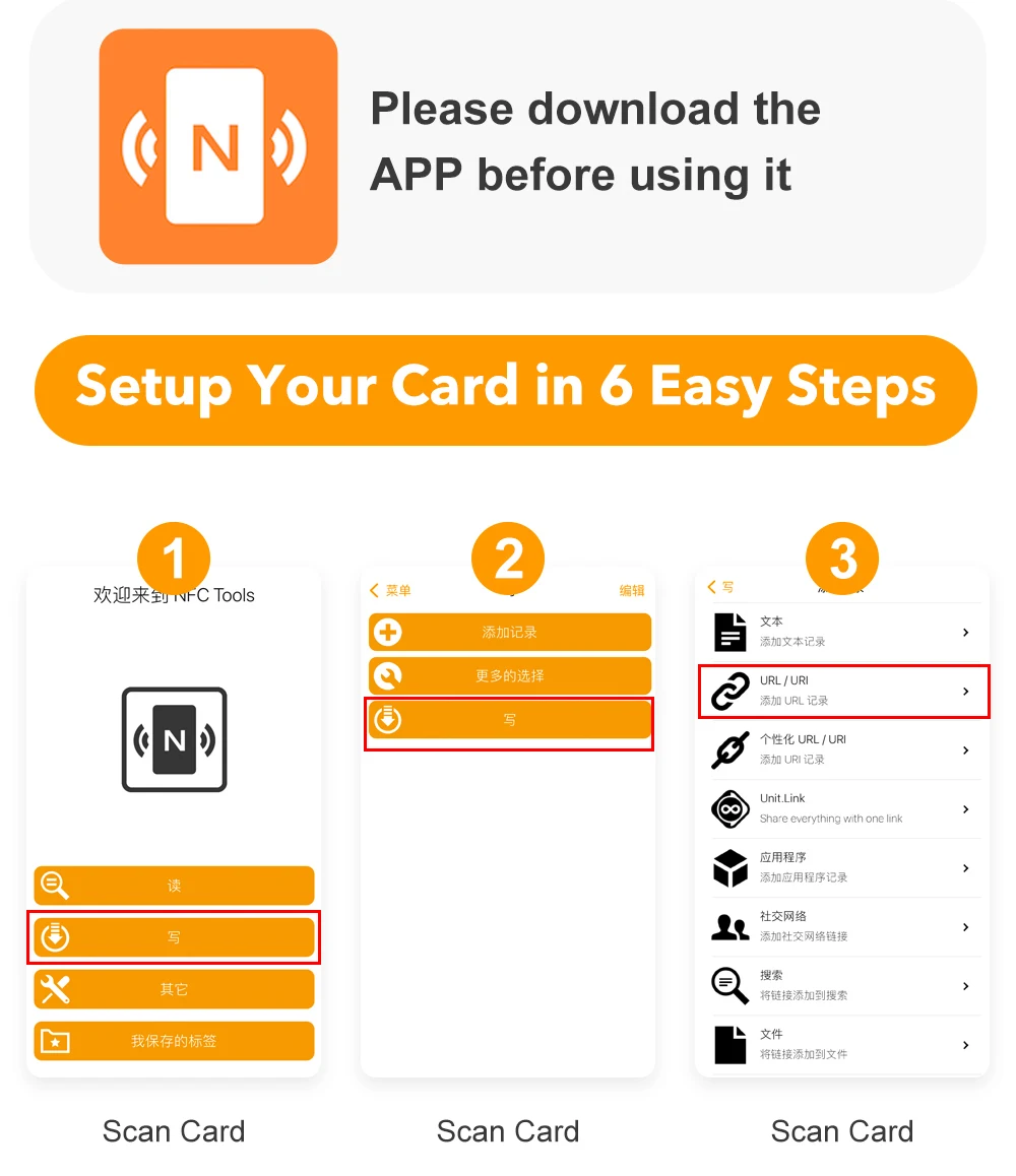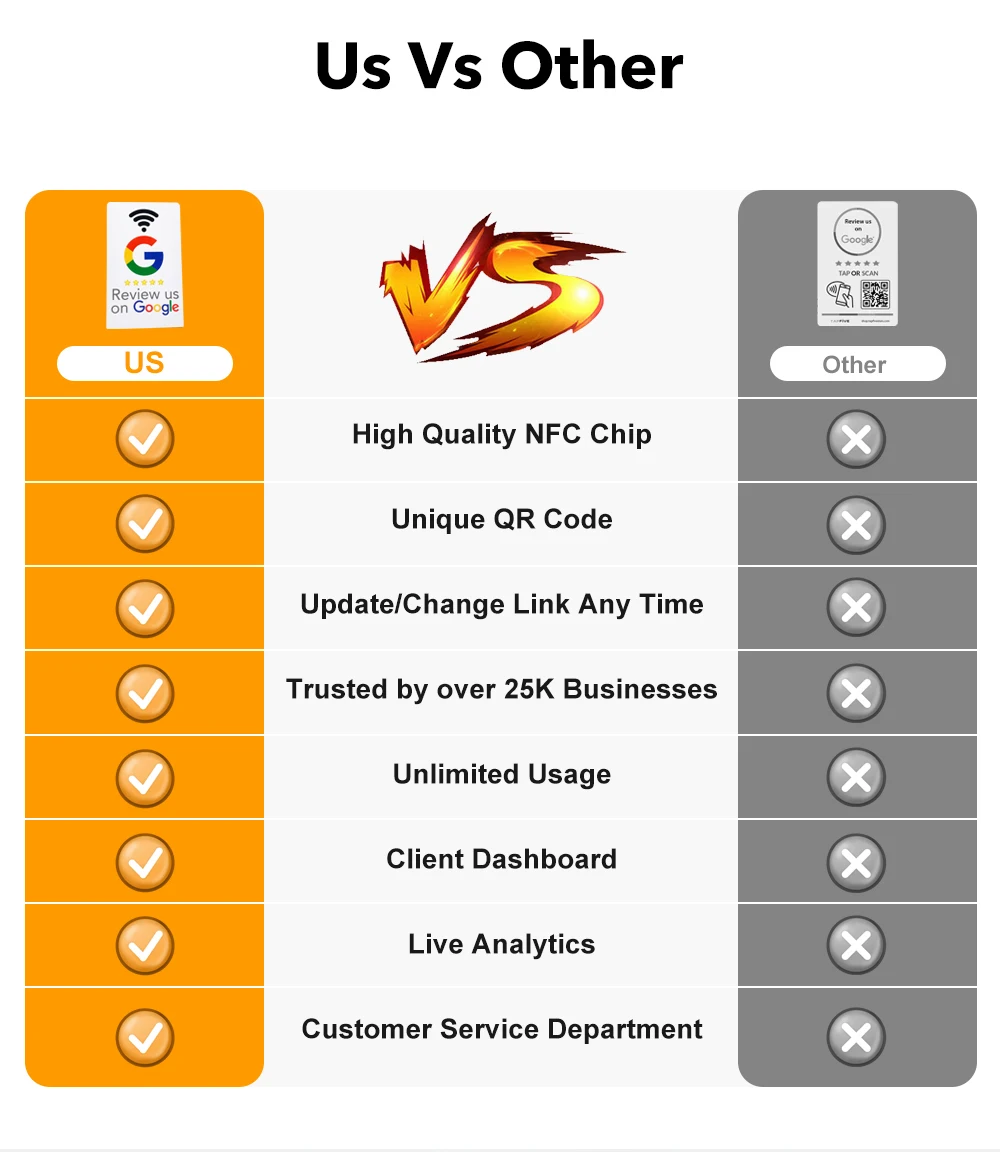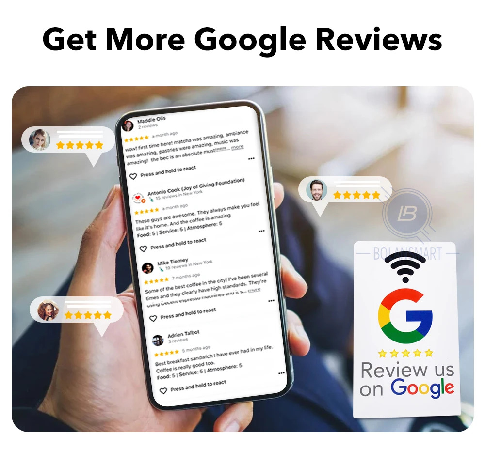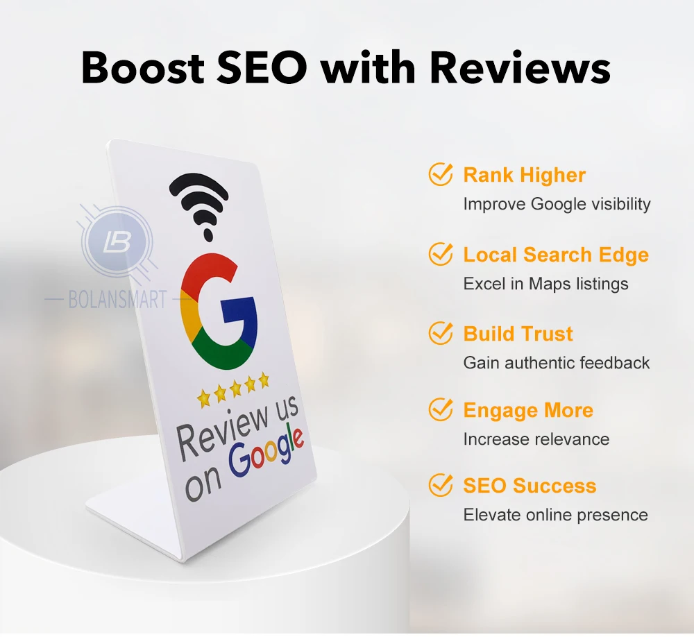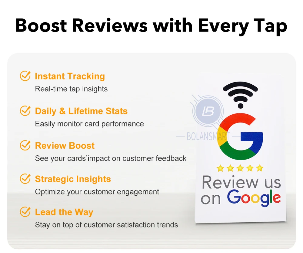 NFC quick link to Google Review or other soical media, you can program the NFC cards with NFC enabled mobile phone with NFC related APP, Such as APP "NFC Tagwriter", and write you google reviews URL into it.