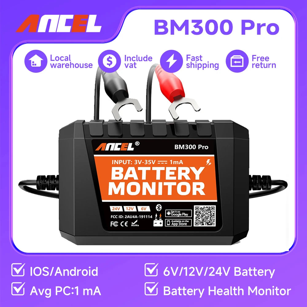 2025 New ANCEL BM300 Pro 6V/24V/12V Battery Tester Battery Monitor SOH SOC Battery Health Analyzer Tool IOS Andoird