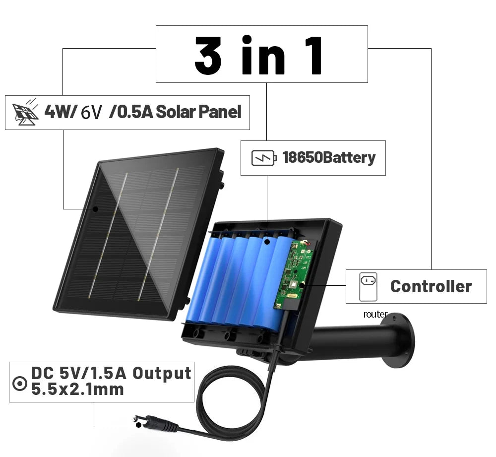 This is a 4W solar charger with 6 built-in 18650 batteries and a maximum capacity of 18000mah. It has an efficient boost circuit, resulting in a maximum output voltage of 5V 6V.
