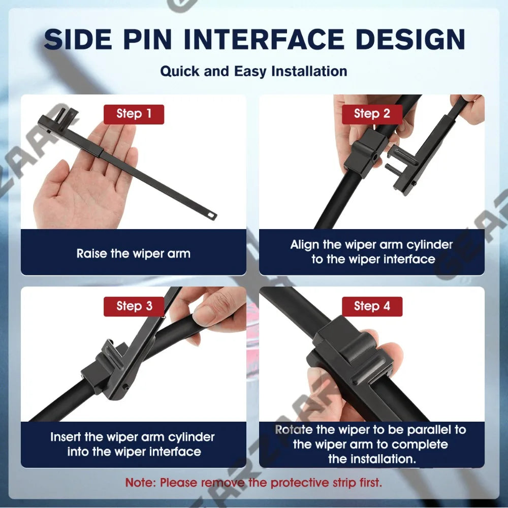 - Please remove the silver protective cover from the rubber before installing the blades.