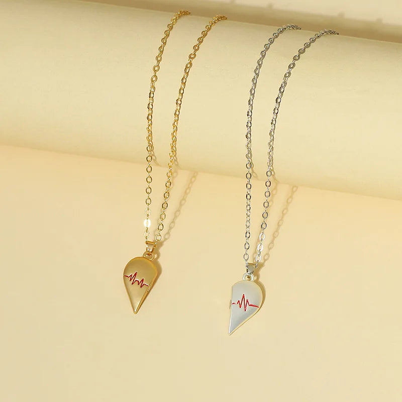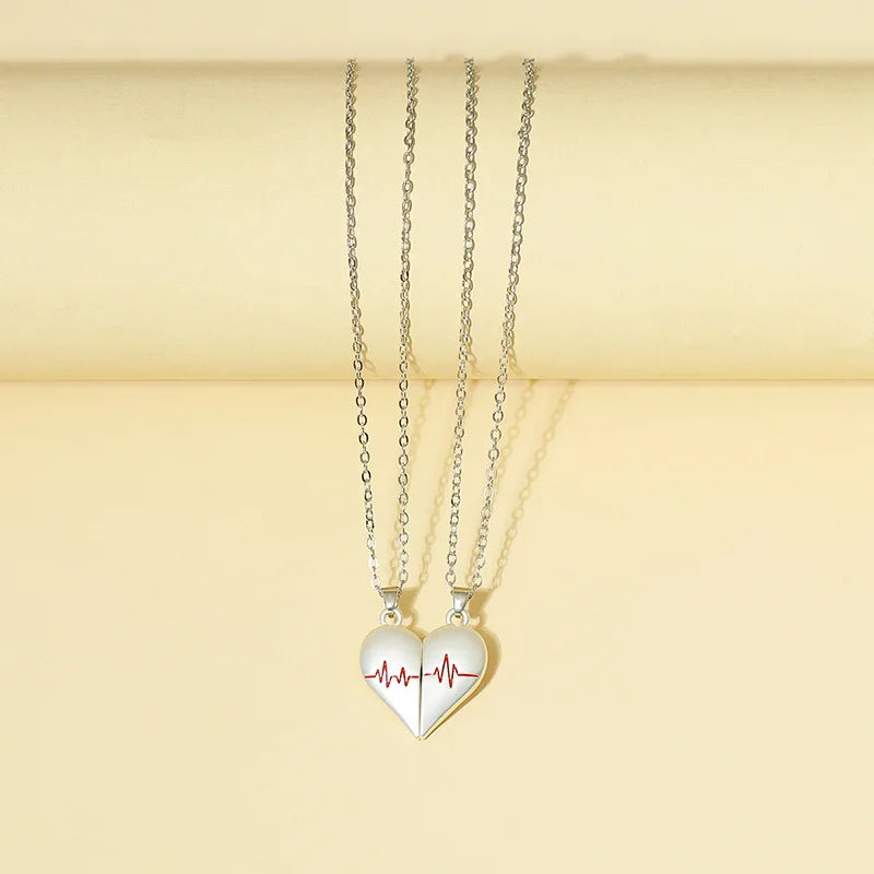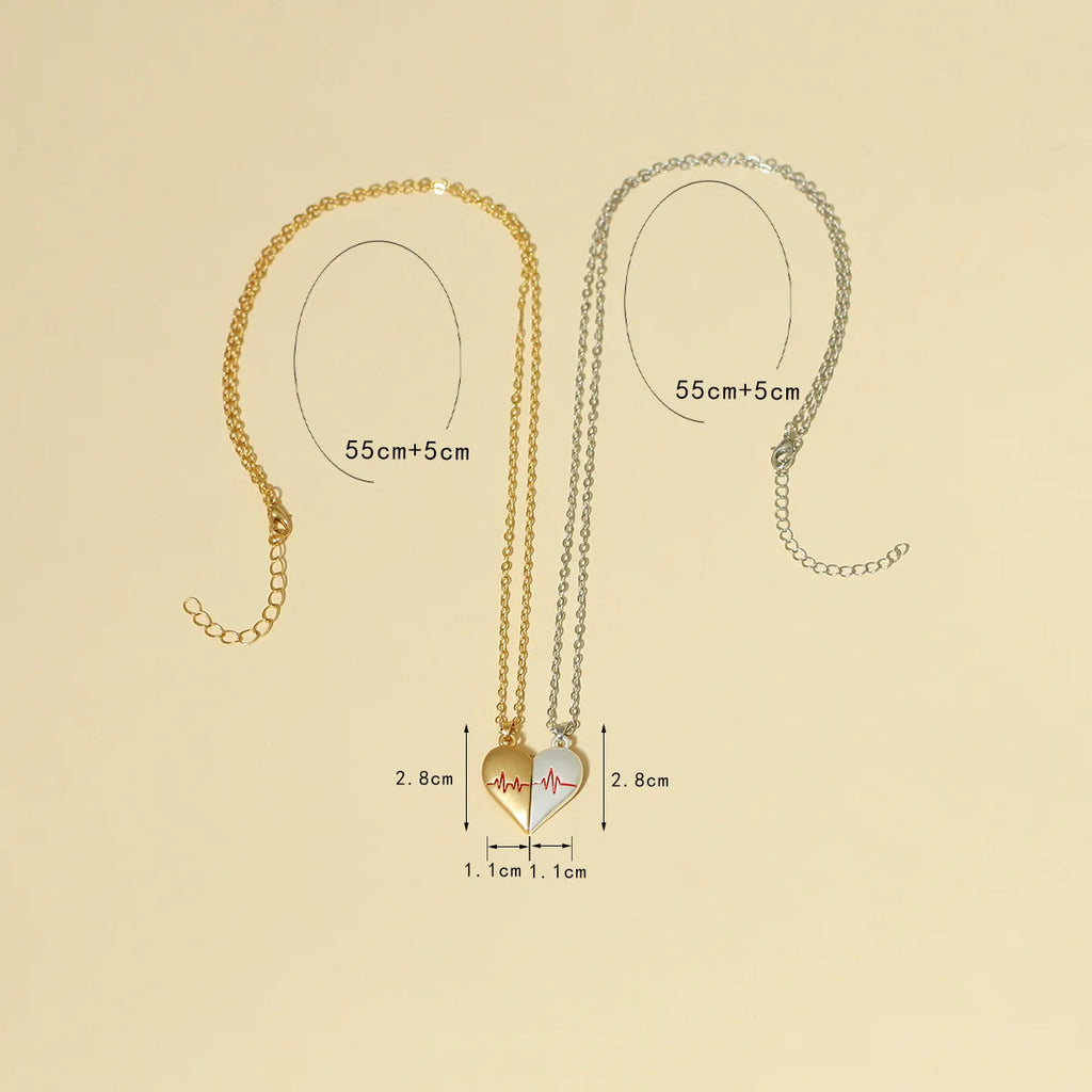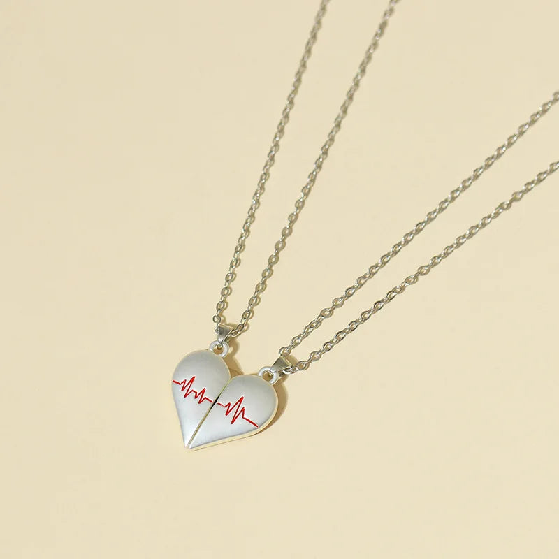 JWER 2Pcs Stainless Steel Electrocardiogram Magnetic Couple Necklace Elegent Heart Necklace Jewelry Lover Creative Gifts