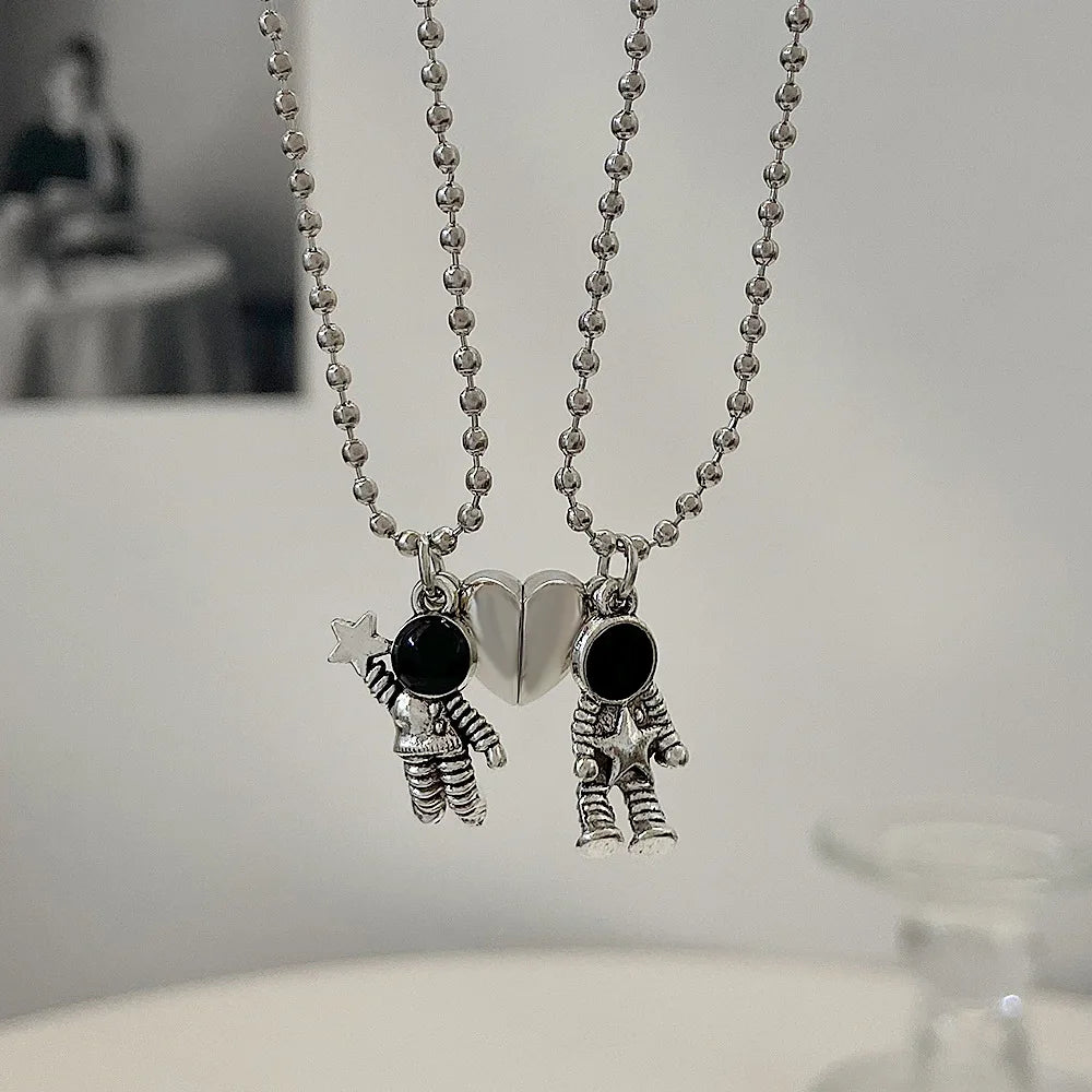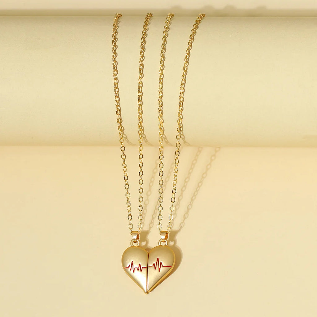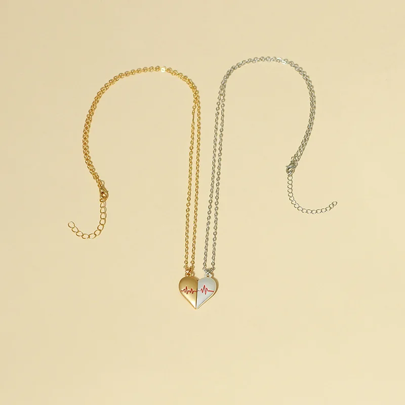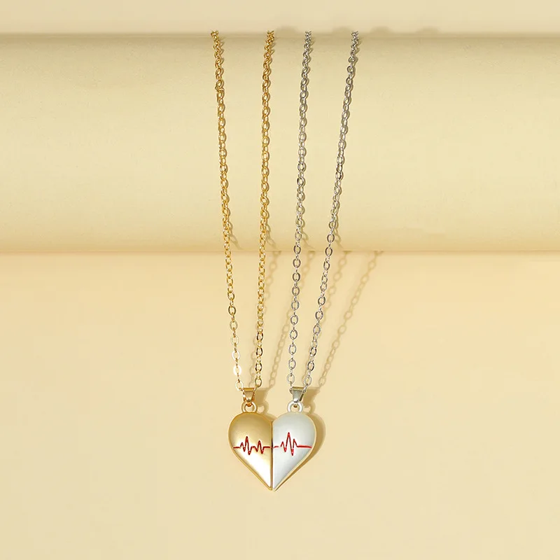 JWER 2Pcs Stainless Steel Electrocardiogram Magnetic Couple Necklace Elegent Heart Necklace Jewelry Lover Creative Gifts