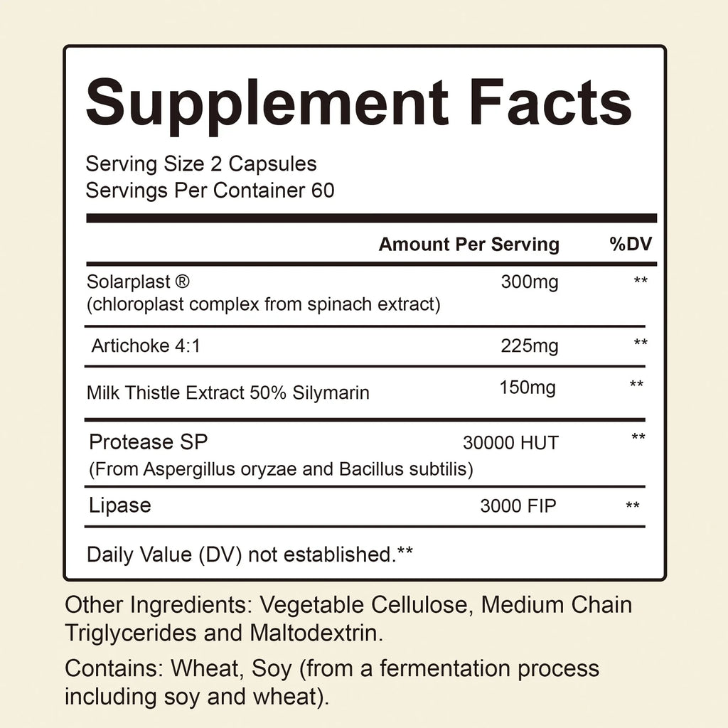 Ingredients: Milk thistle extract, dandelion and digestive enzymes