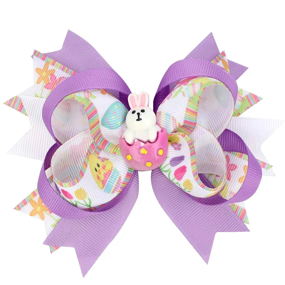 ncmama 4.5" Easter Day Hair Clips for Girls Kids Handmade Swallowtail Stack Rabbit Hair Bows Hairpins Fashion Hair Accessories