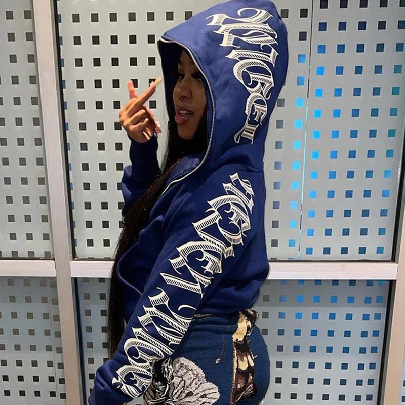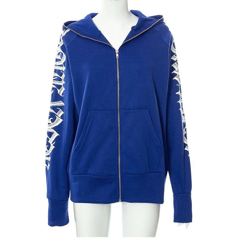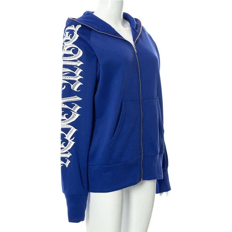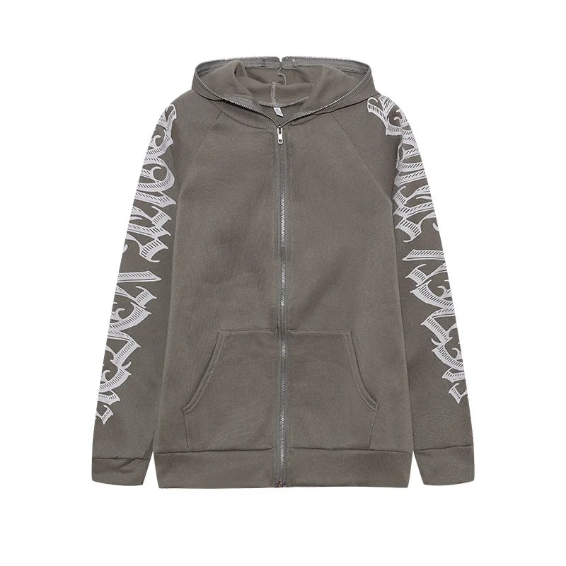 Punk Gothic Letter Print Women Hoddie Harajuku Y2k For Men Zip Hoodie Sweatshirt Women Sudaderas Hombre Unisex Hooded Jackets