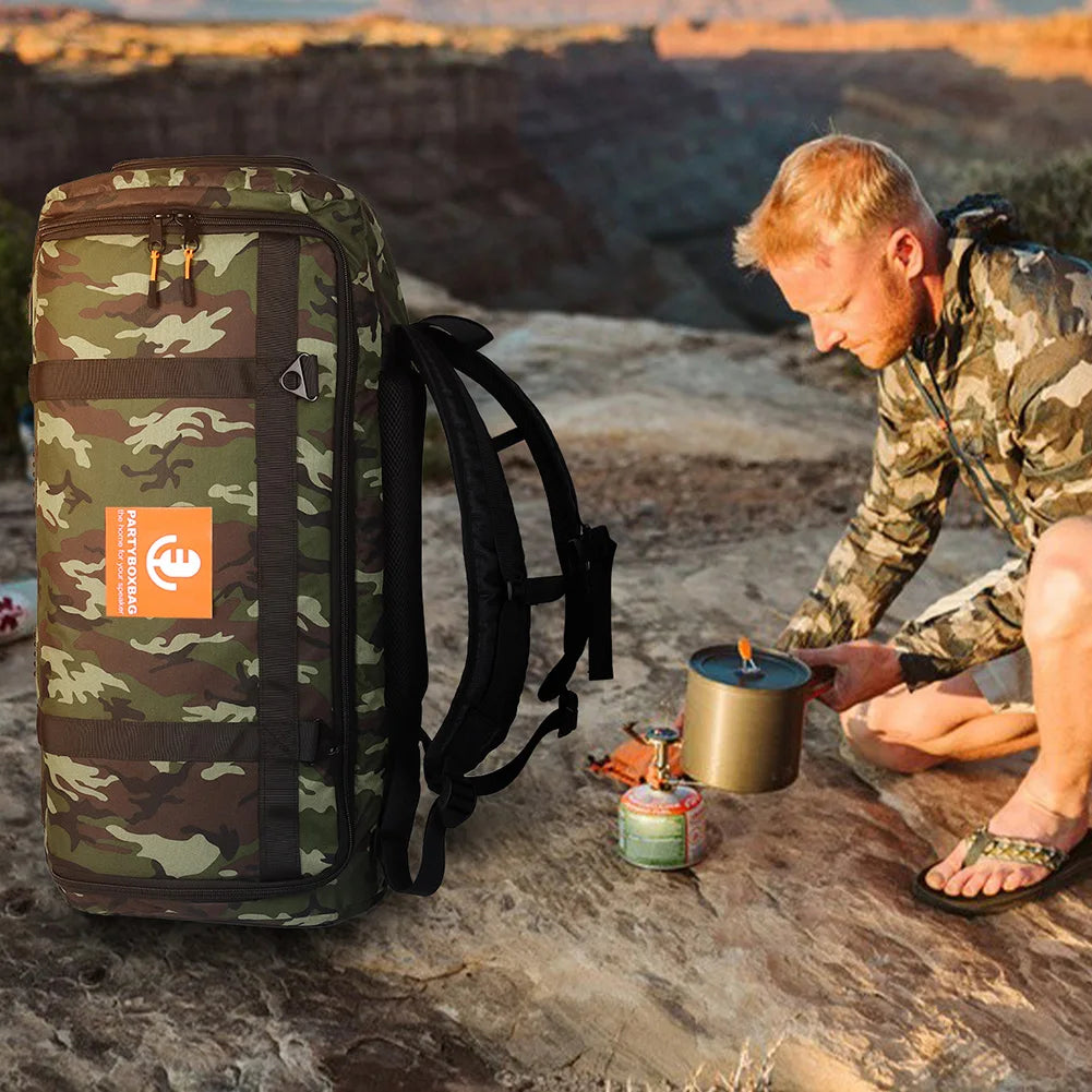 2. Multi-functional Large Capacity: This portable speaker carry tote bag backpack not only stores the speaker but also holds accessories such as data cables, chargers, phones, and headphones. With a heavy-duty dual zipper design, the entire side of the bag can be opened. Inside, there are large capacity storage pockets that provide ample space for accessories, and the partitioned storage design prevents scratches between the speaker and accessories. It is easy to load and unload, and simple to open and close.