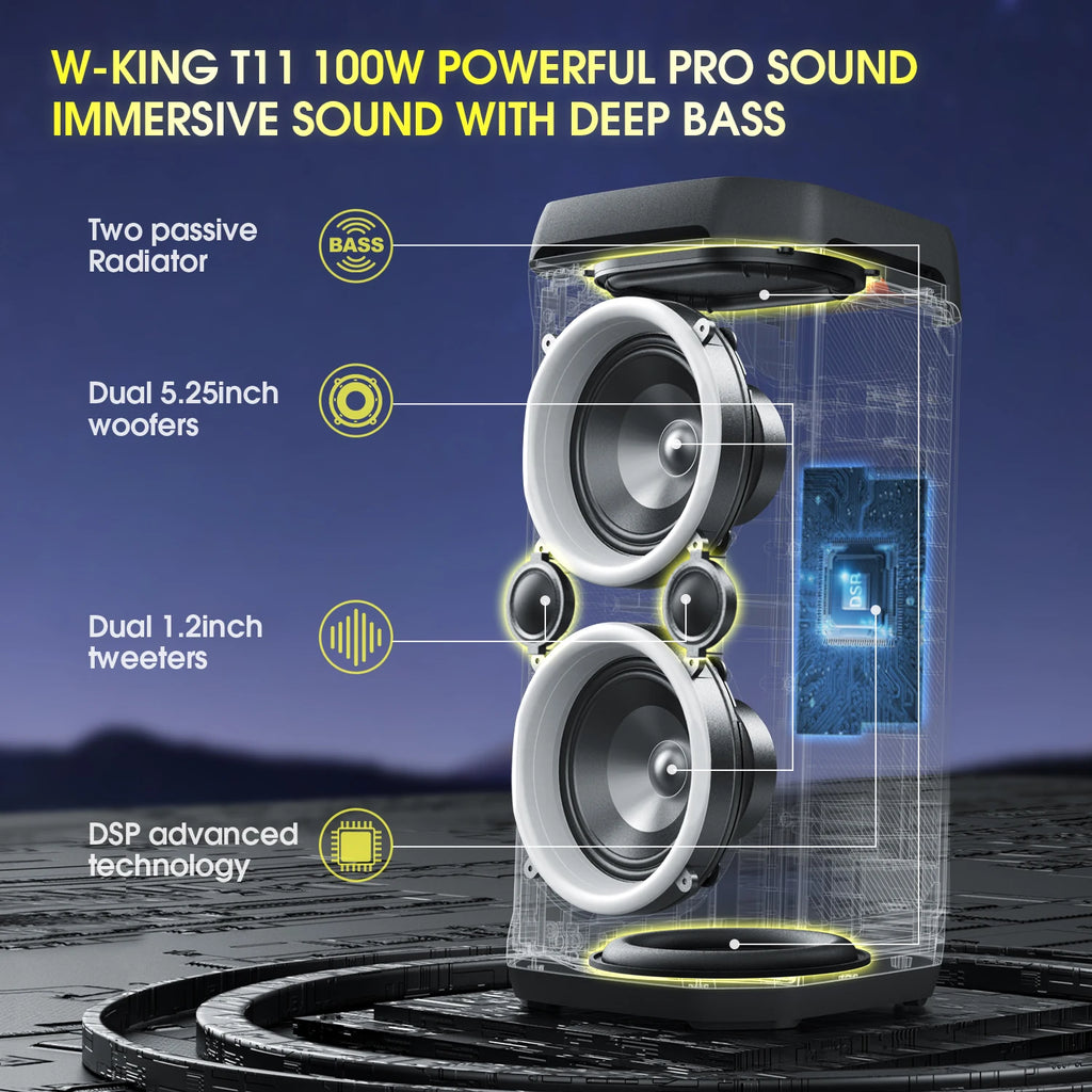 W-KING 100W RMS Bluetooth Speakers, IPX6 Waterproof, V5.3 Portable Party Boombox Wireless Deep Bass/115dB Loud Massive Sound