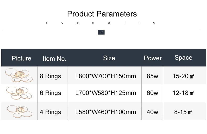 8 Rings L90*W70*H15cm Power:85W Space:15-20 square meters