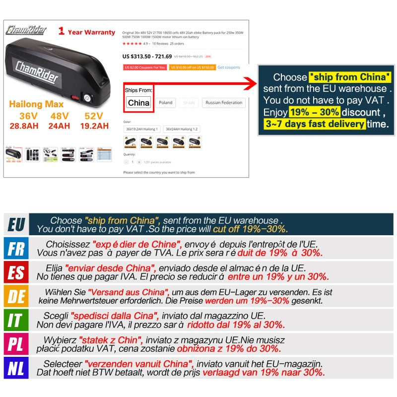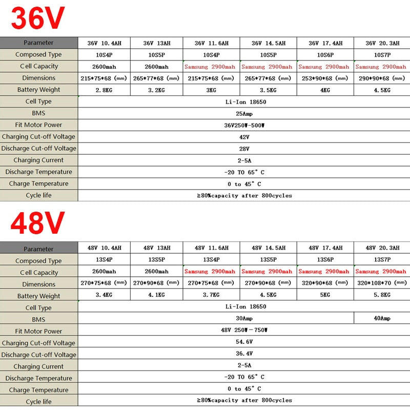 Chamrider 36V Battery 10AH ebike battery 25A BMS 48V battery 30A 18650 Lithium Battery Pack For Electric bike Electric Scooter