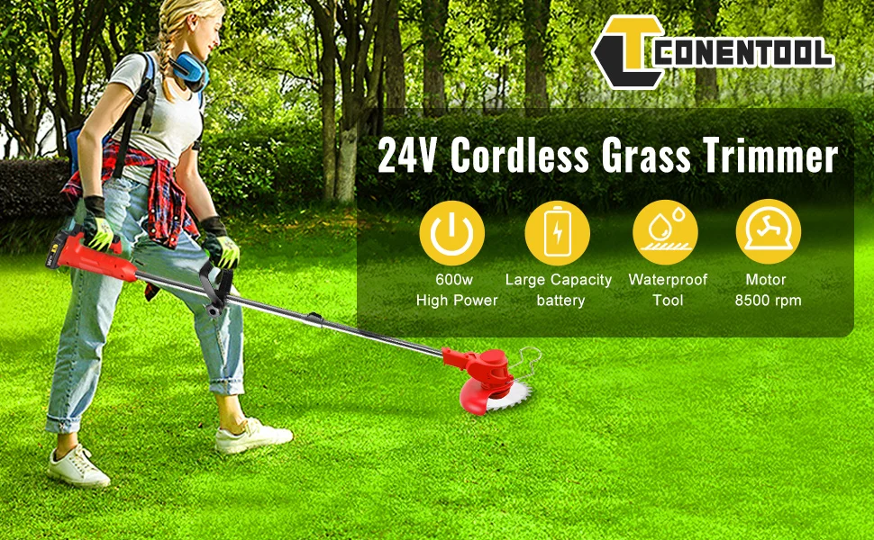 24V Cordless Grass Trimmer Electric Strimmer Garden Edger with Charger and 2 BatteriesFeatures