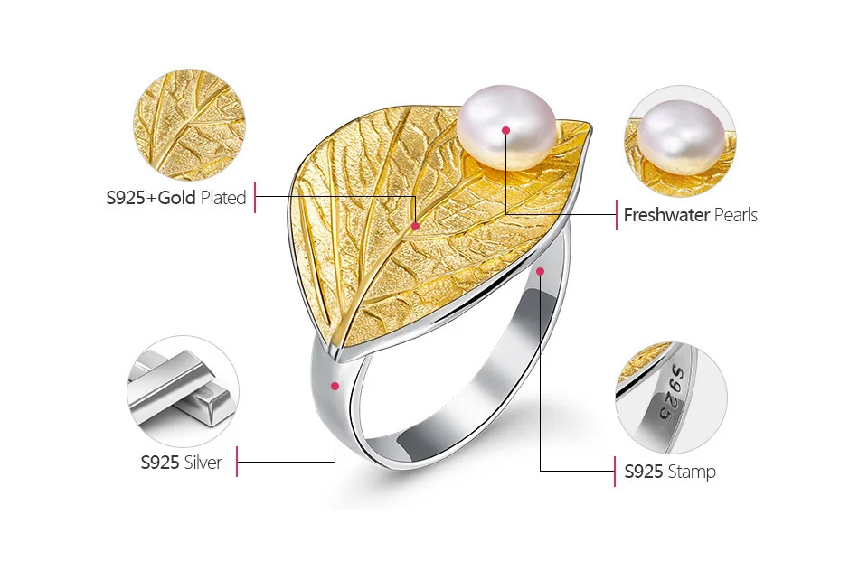 Lotus Fun Real 925 Sterling Silver Natural Pearl Handmade Designer Fine Jewelry Creative Open Ring Leaf Rings for Women Bijoux