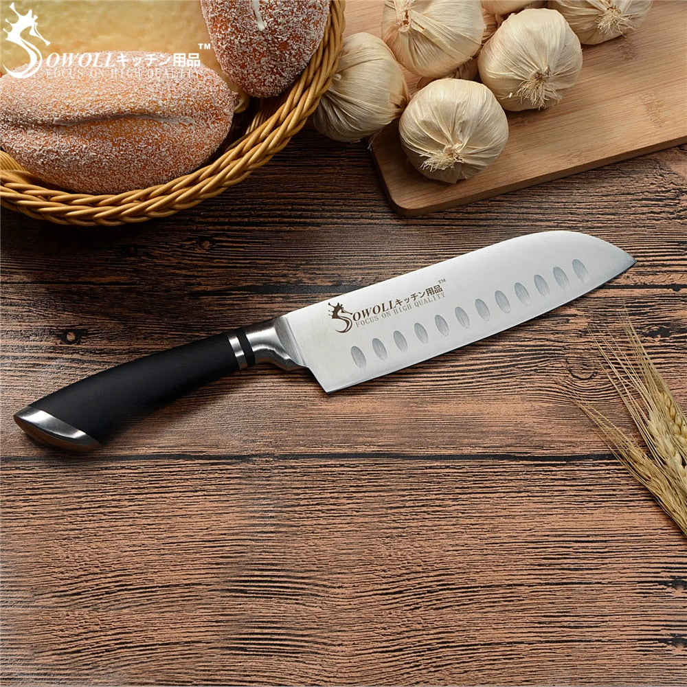 SOWOLL Cooking Kitchen Knife Tools Handmade Stainless Steel Knife 7 inch Japanese Cooking Knife Santoku Salmon Sushi Knife Gift