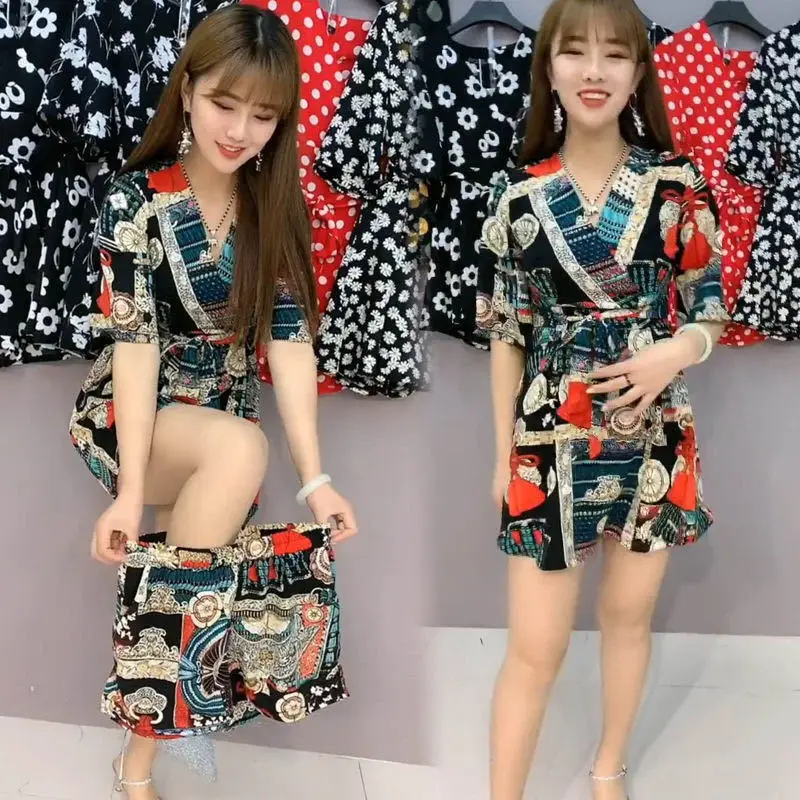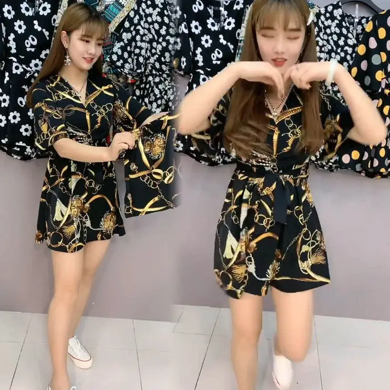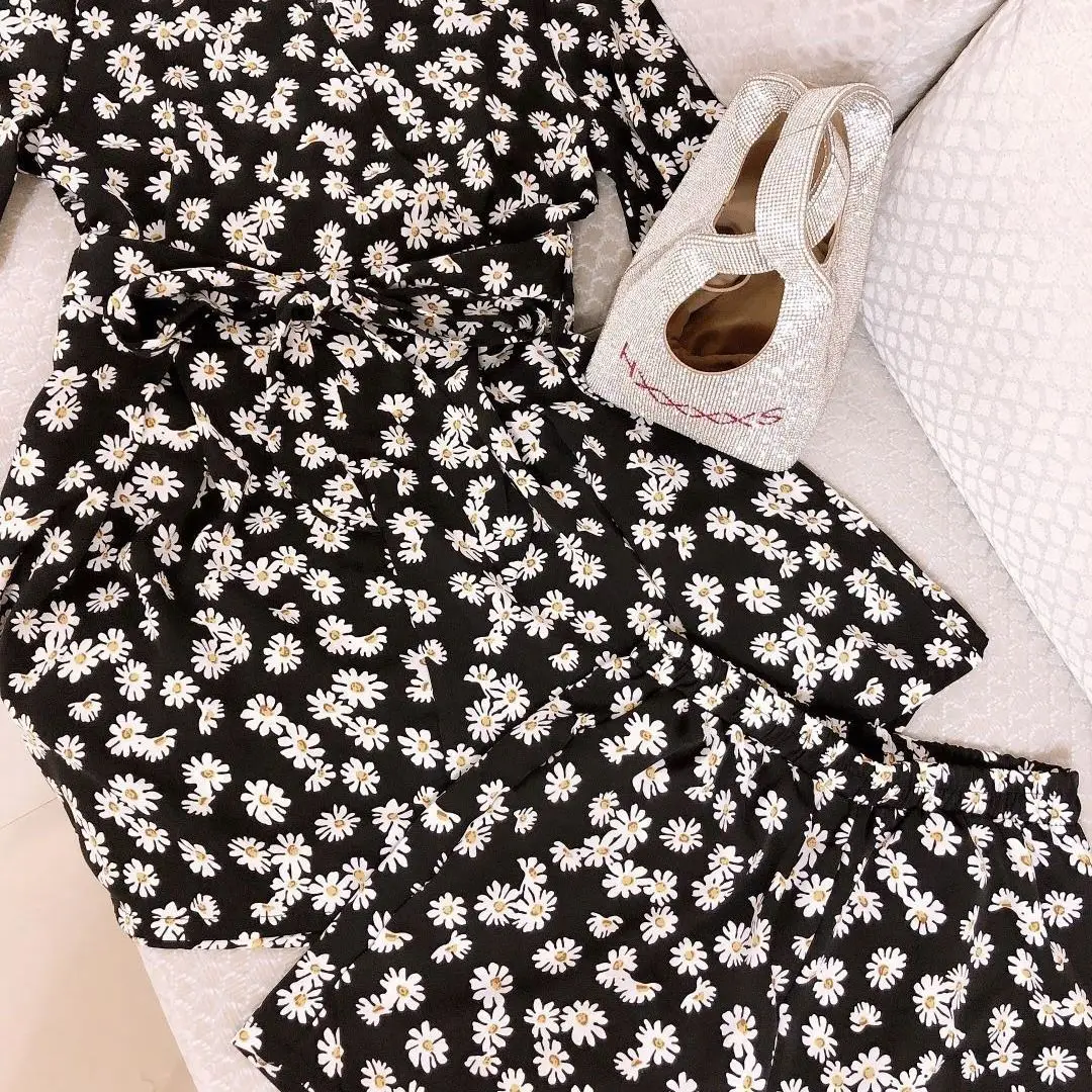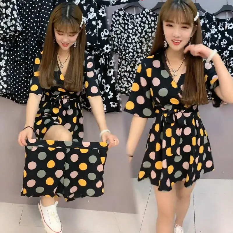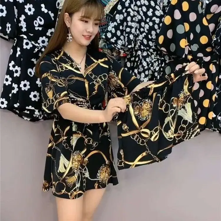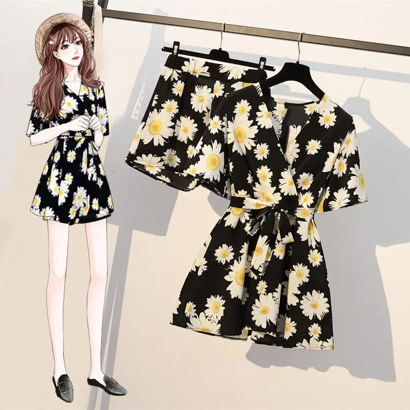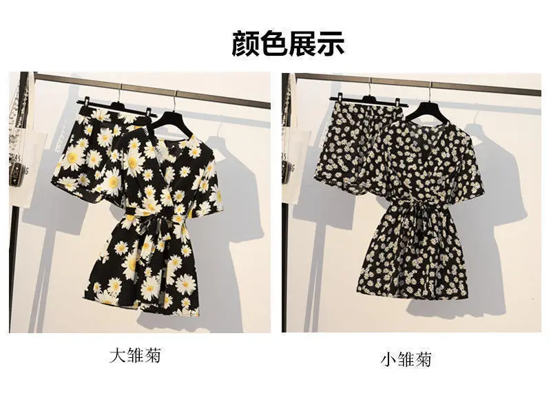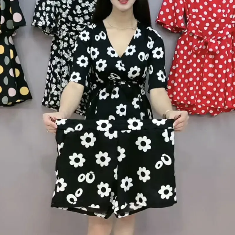 Women's Pants Summer Fashion Dress Suit 2021 New Korean V-neck Slim Loose Top T-shirt Shorts Female Two Piece Set Women Skirt