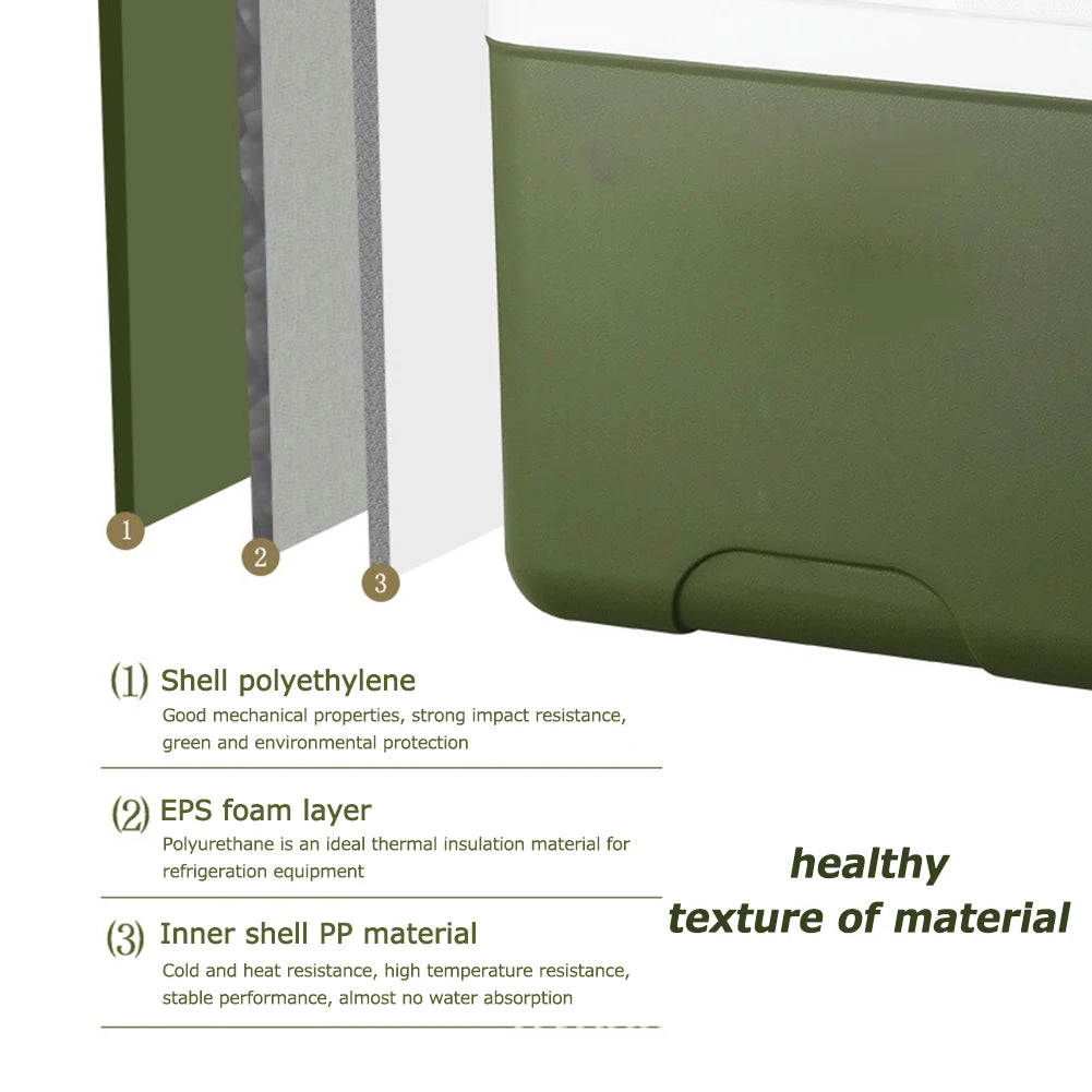 5. Multi-purpose and Portable: This food preservation box serves multiple purposes and is suitable for various occasions. Whether you're traveling by car, going fishing, camping, or transporting refrigerated goods, it is a versatile companion for all your needs.