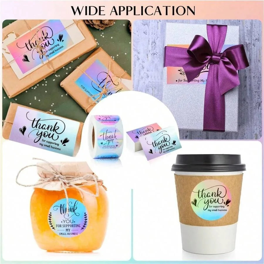 570 Pcs Laser Thank You Business Cards Stickers Kit, Include 50pcs Business Card 500pcs Thank You Stickers 20pcs Resealable Pack